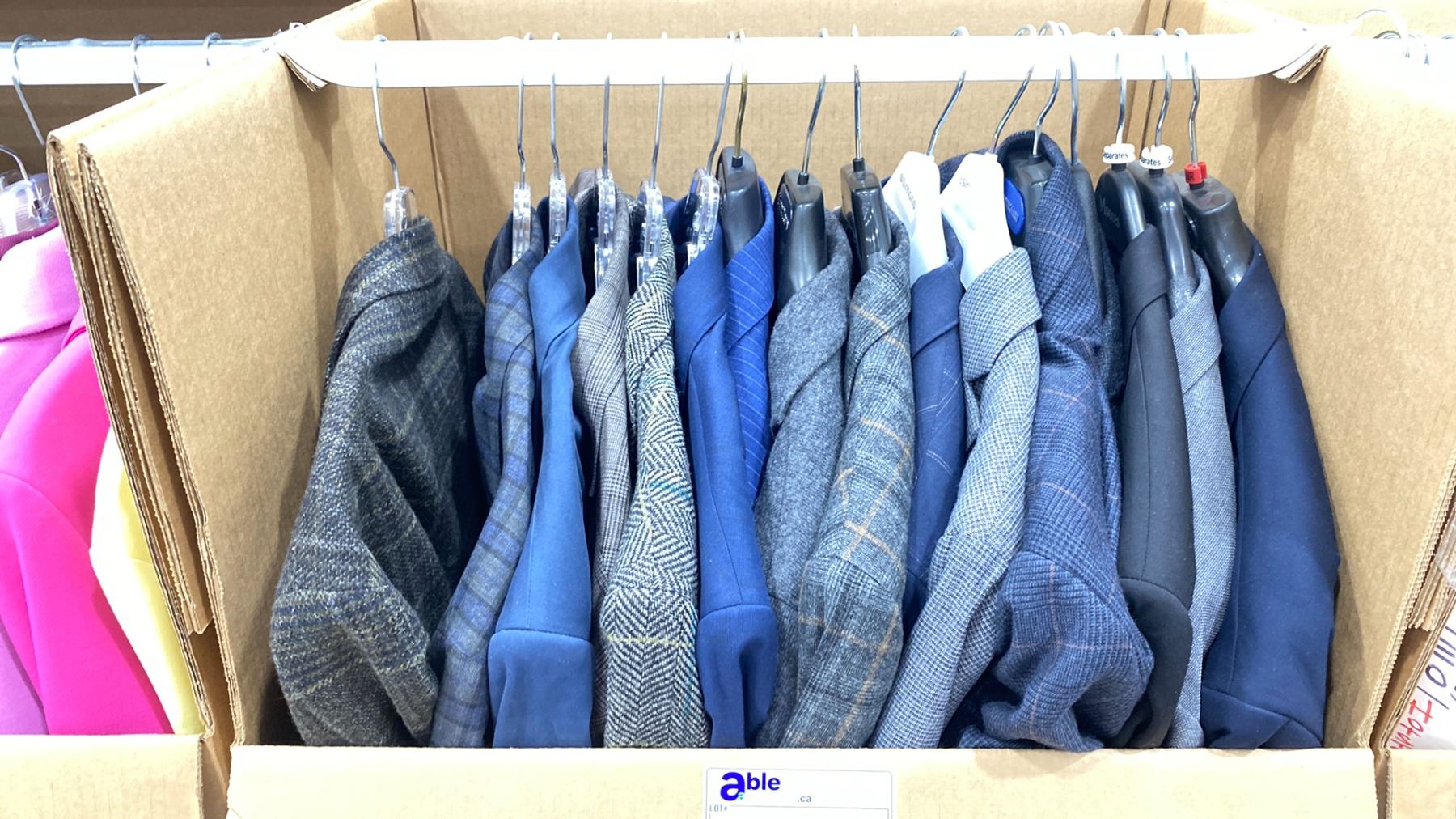 WARDROBE BOX OF ASSORTED CLOTHING (BOX AND ALL CONTENTS MUST BE TAKEN)