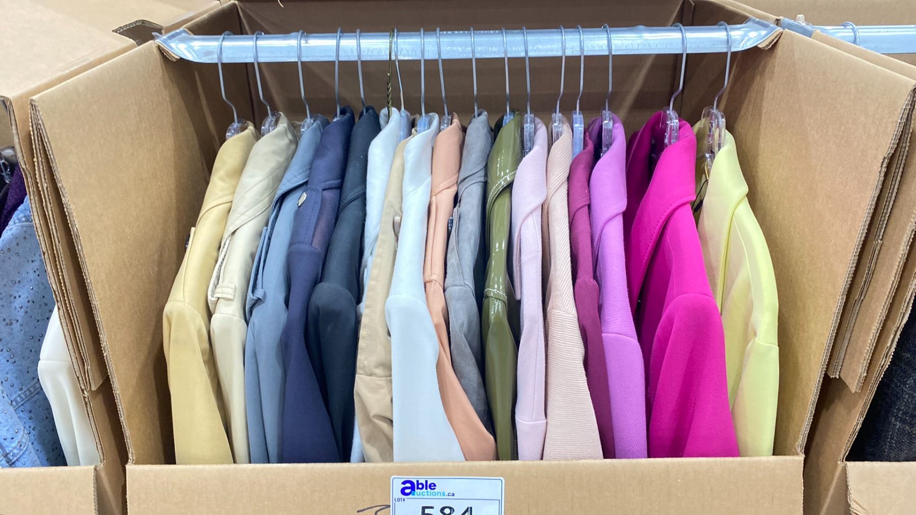 WARDROBE BOX OF ASSORTED CLOTHING (BOX AND ALL CONTENTS MUST BE TAKEN)