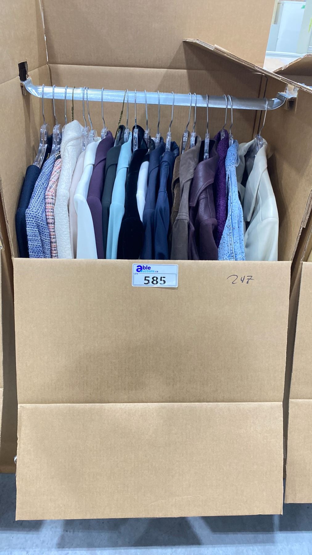 WARDROBE BOX OF ASSORTED CLOTHING (BOX AND ALL CONTENTS MUST BE TAKEN)