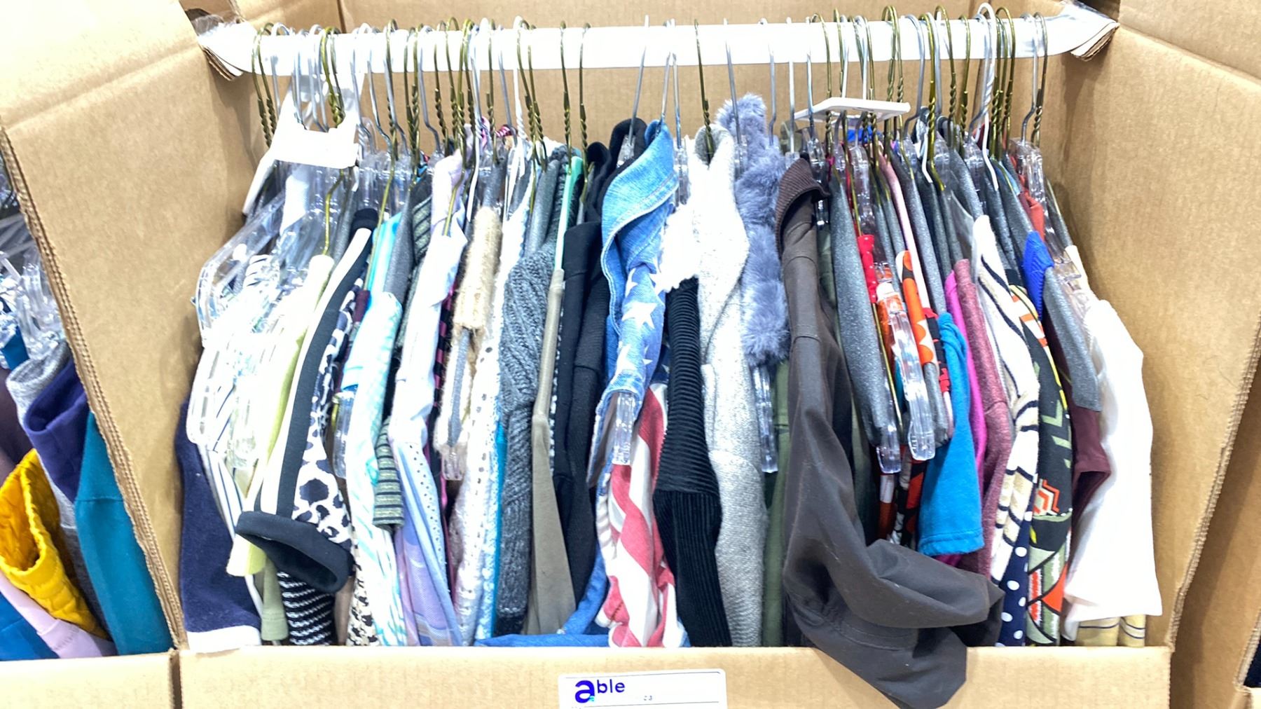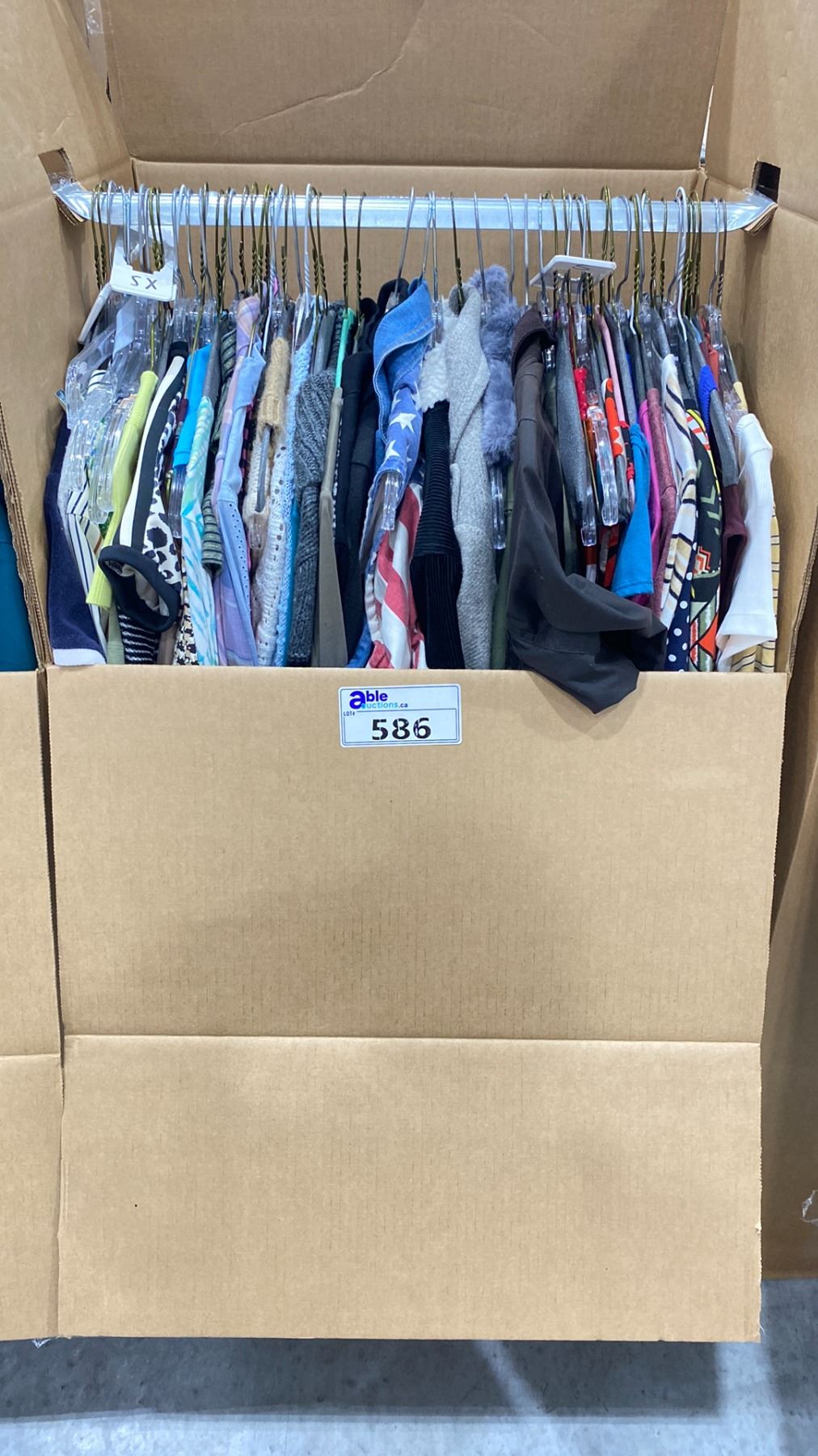 WARDROBE BOX OF ASSORTED CLOTHING (BOX AND ALL CONTENTS MUST BE TAKEN)