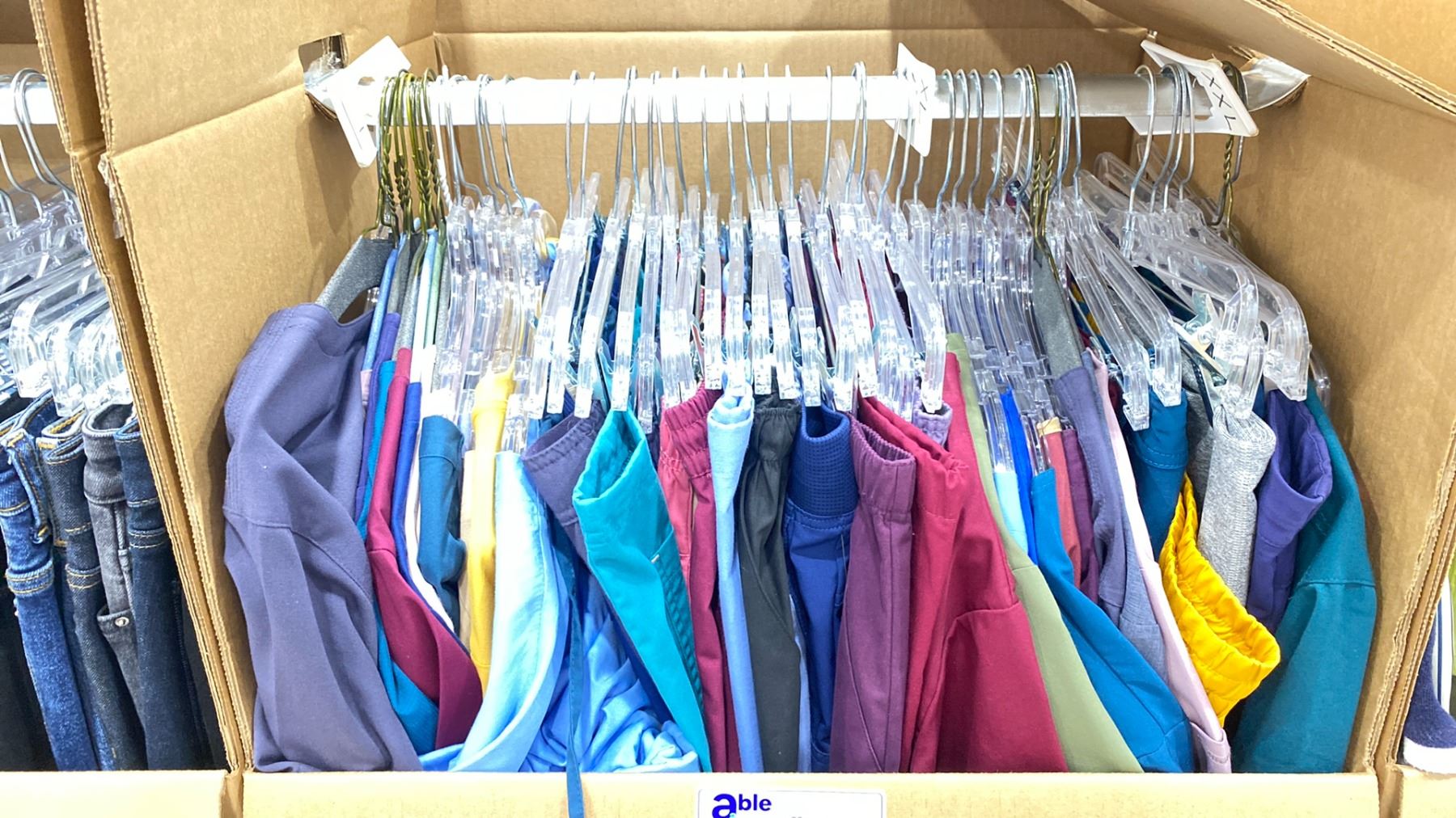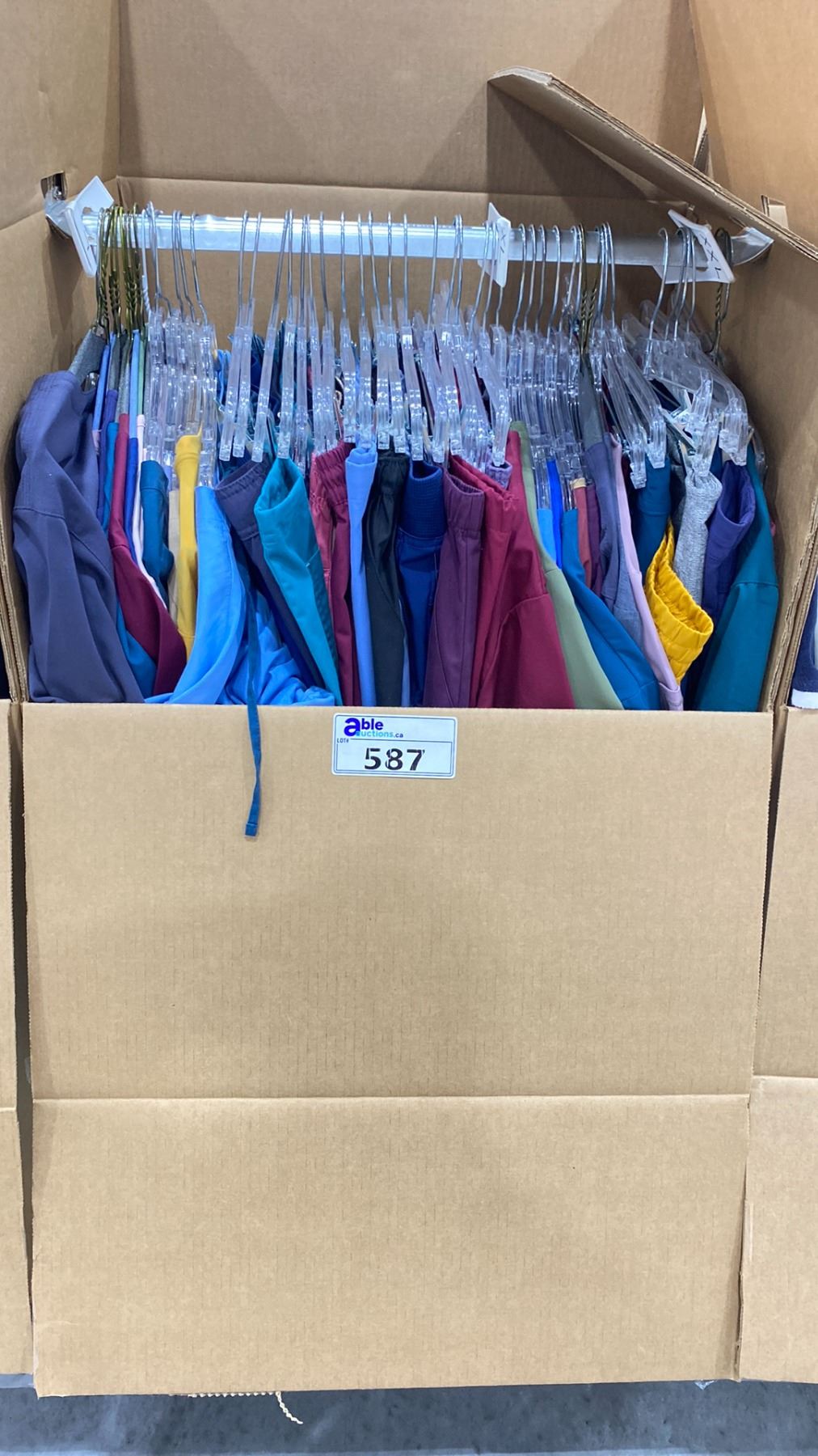 WARDROBE BOX OF ASSORTED CLOTHING (BOX AND ALL CONTENTS MUST BE TAKEN)