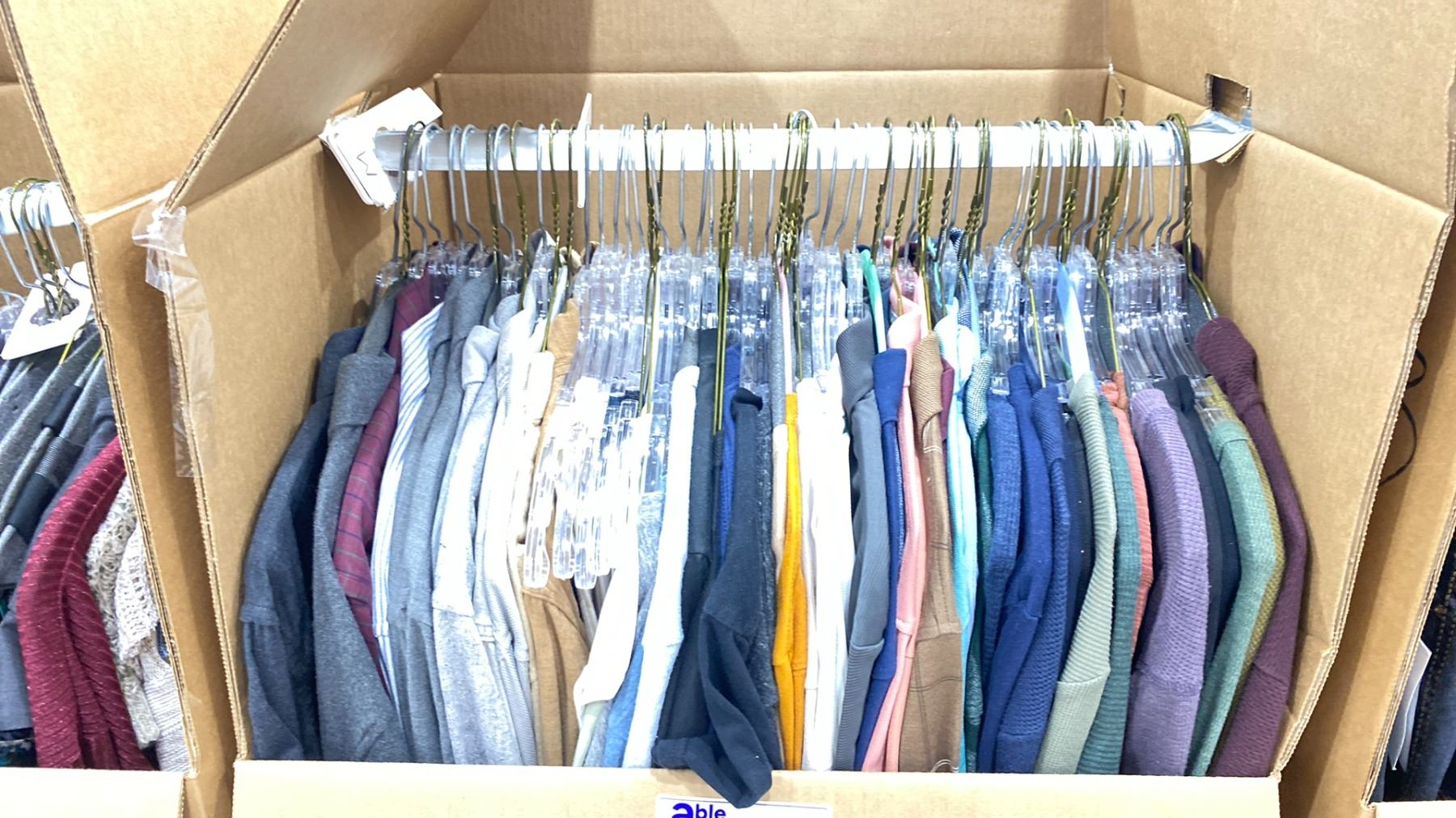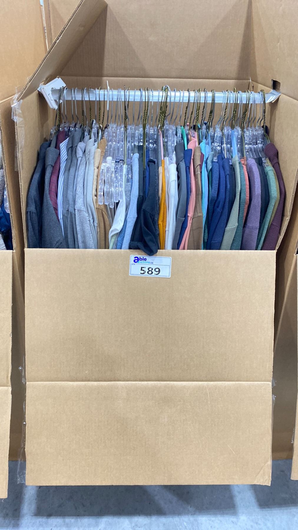 WARDROBE BOX OF ASSORTED CLOTHING (BOX AND ALL CONTENTS MUST BE TAKEN)