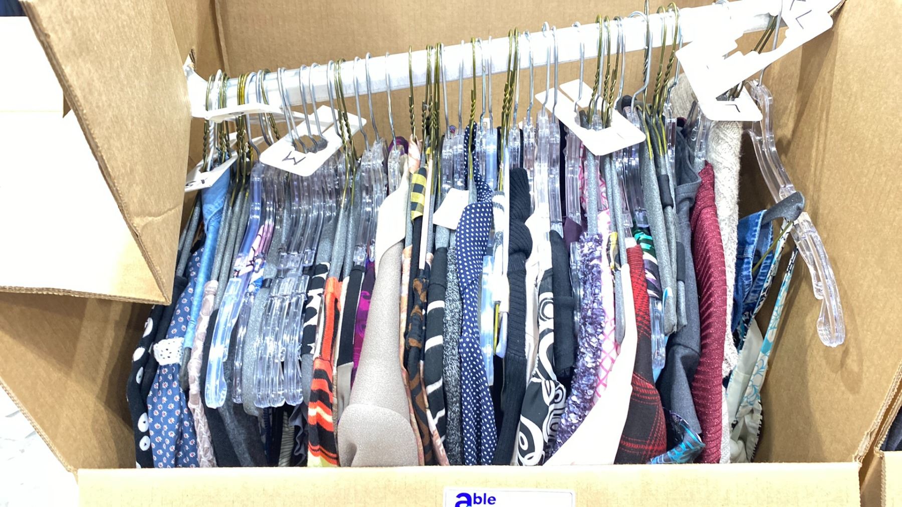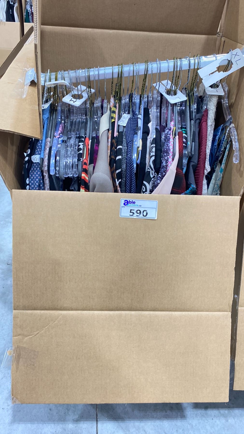WARDROBE BOX OF ASSORTED CLOTHING (BOX AND ALL CONTENTS MUST BE TAKEN)