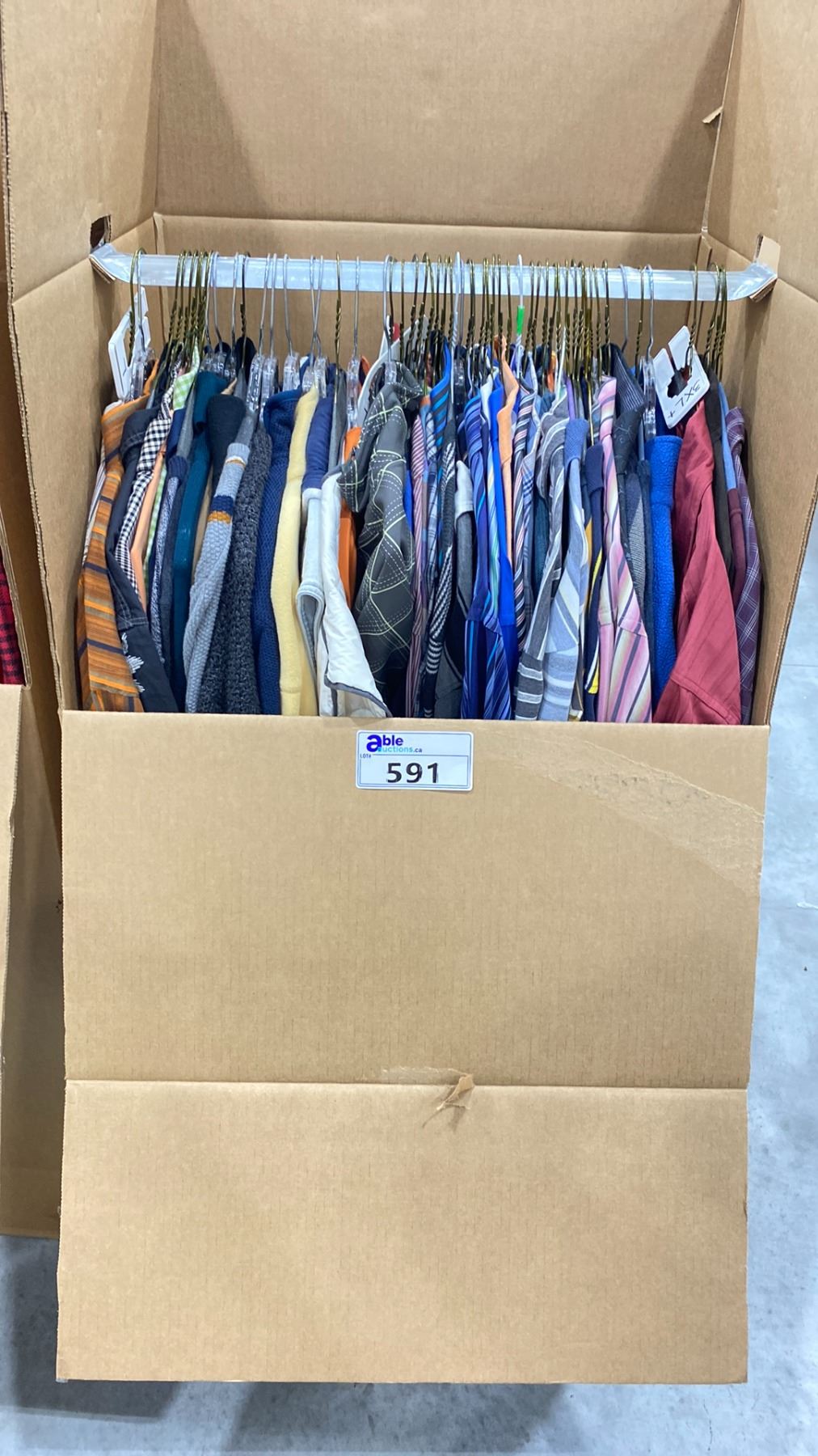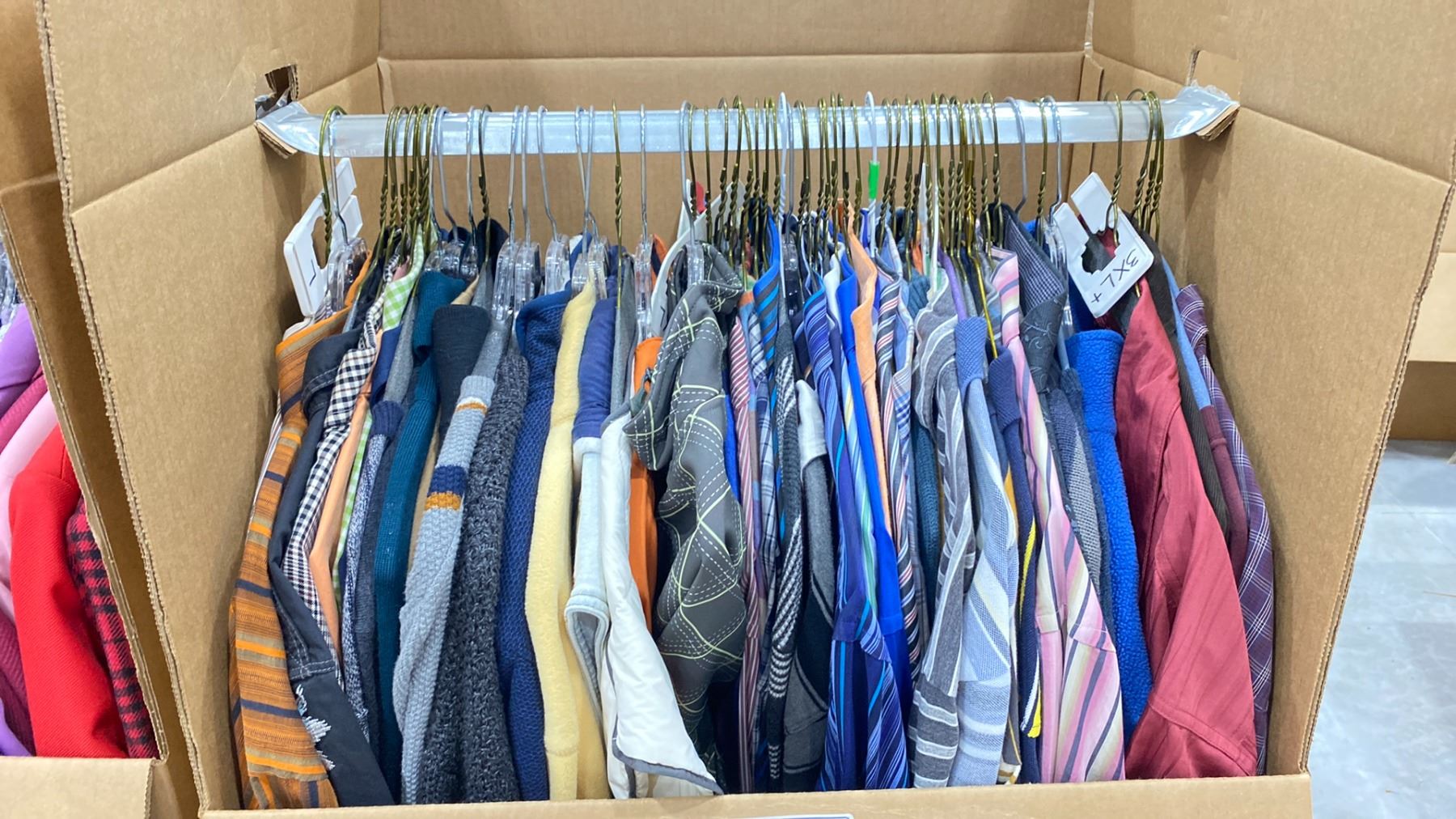 WARDROBE BOX OF ASSORTED CLOTHING (BOX AND ALL CONTENTS MUST BE TAKEN)