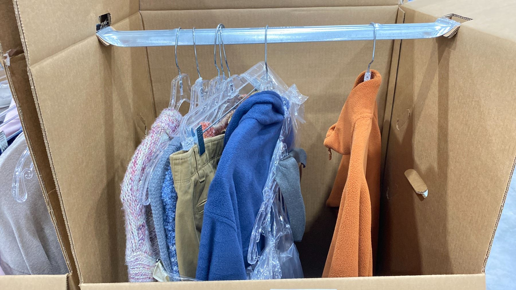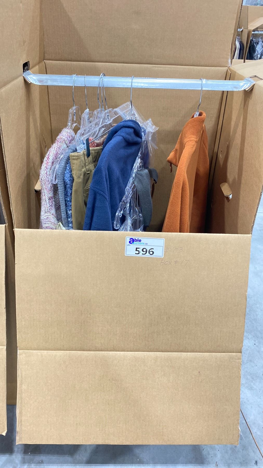 WARDROBE BOX OF ASSORTED CLOTHING (BOX AND ALL CONTENTS MUST BE TAKEN)
