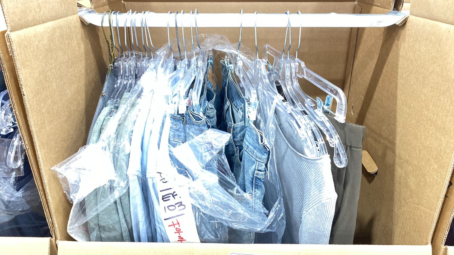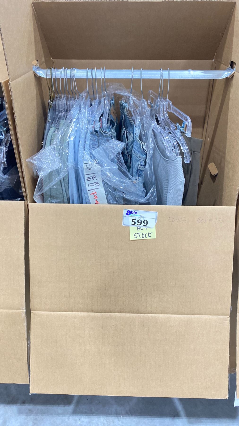 WARDROBE BOX OF ASSORTED CLOTHING (BOX AND ALL CONTENTS MUST BE TAKEN)