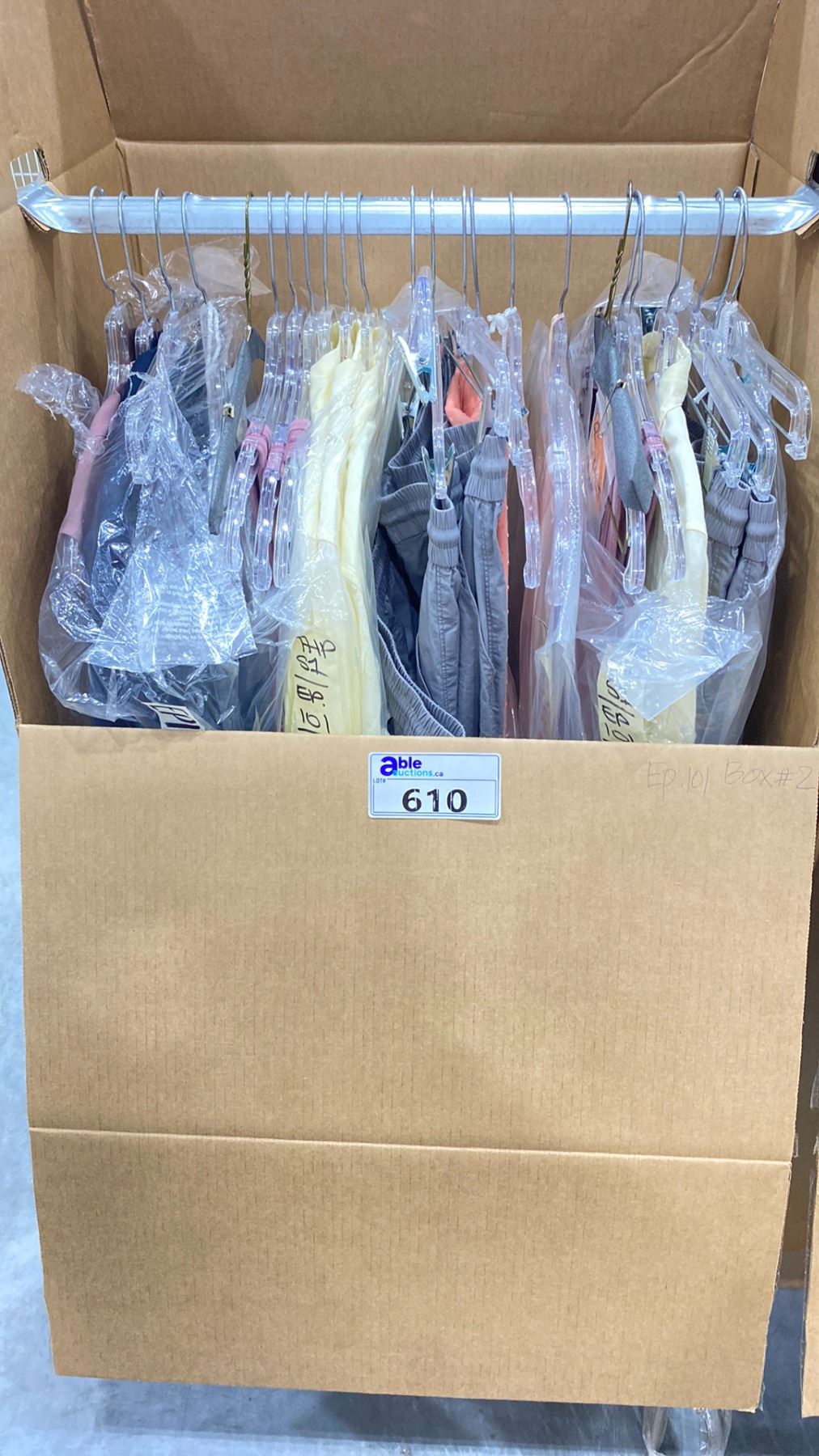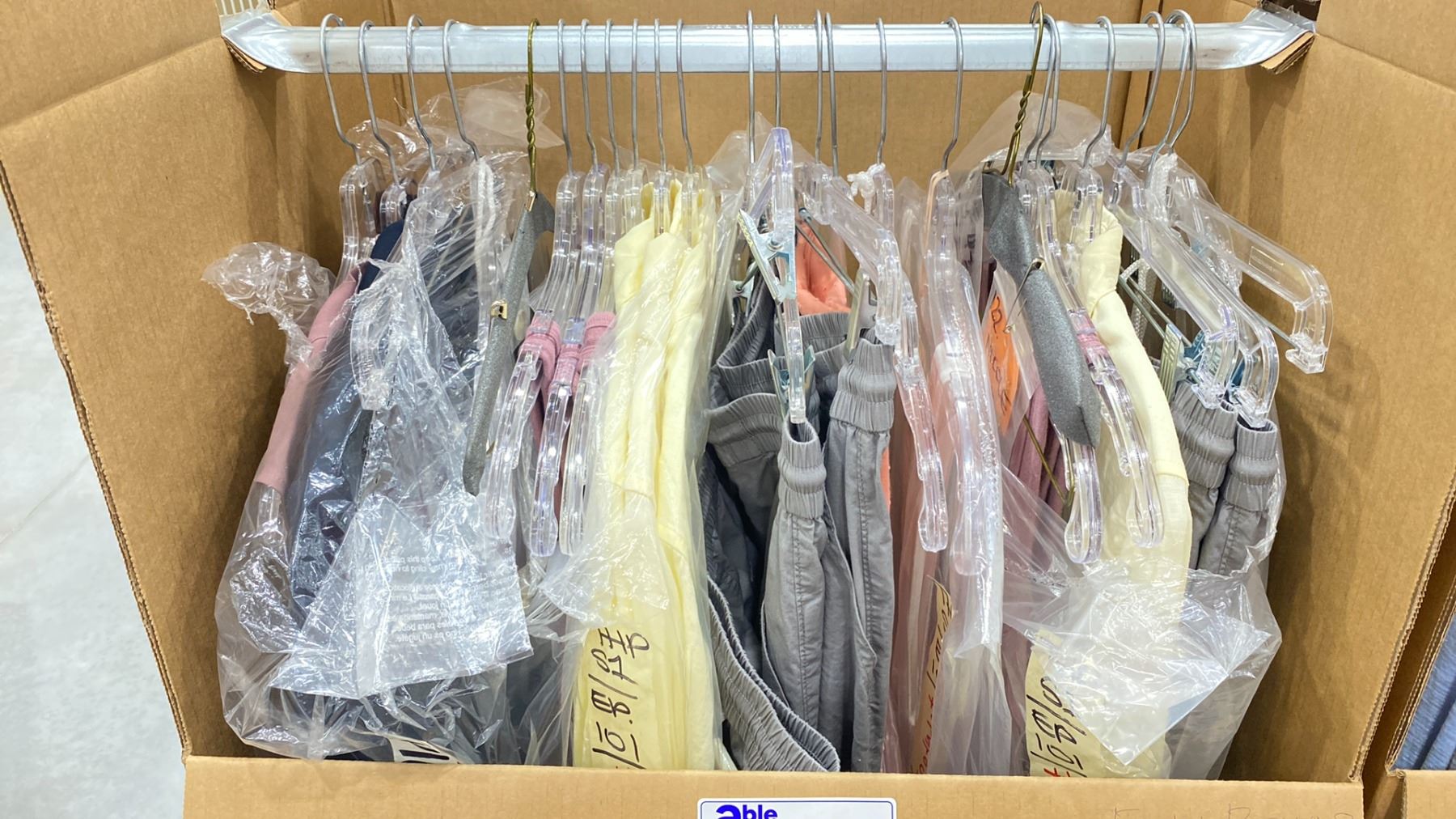 WARDROBE BOX OF ASSORTED CLOTHING (BOX AND ALL CONTENTS MUST BE TAKEN)
