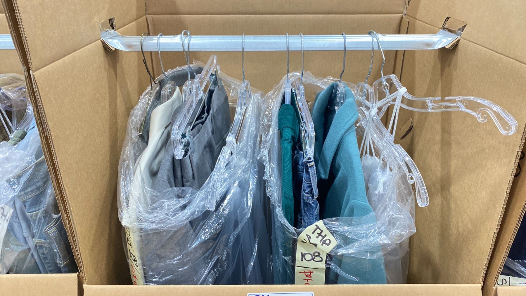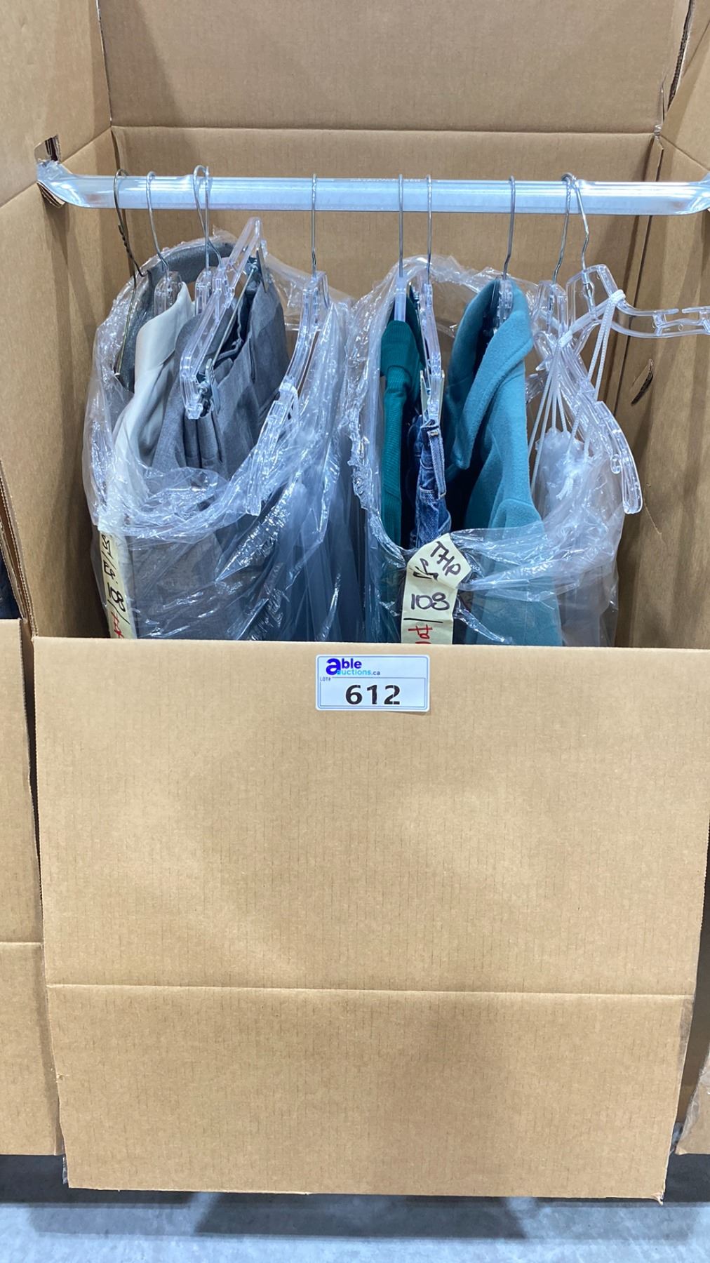WARDROBE BOX OF ASSORTED CLOTHING (BOX AND ALL CONTENTS MUST BE TAKEN)