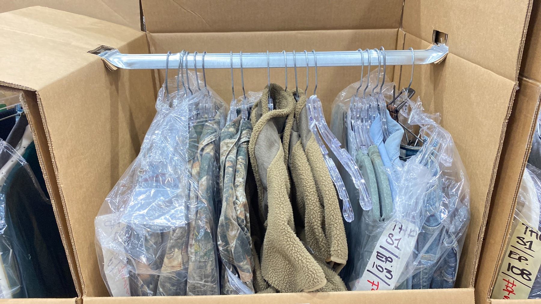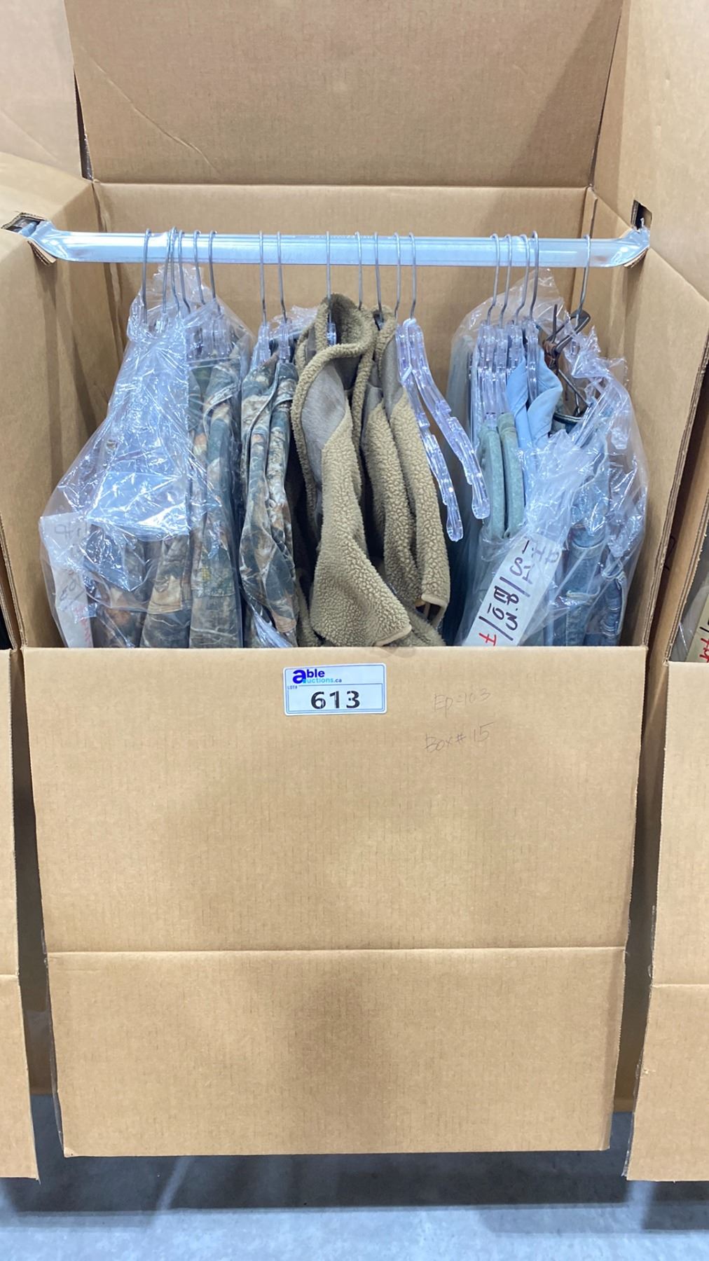 WARDROBE BOX OF ASSORTED CLOTHING (BOX AND ALL CONTENTS MUST BE TAKEN)