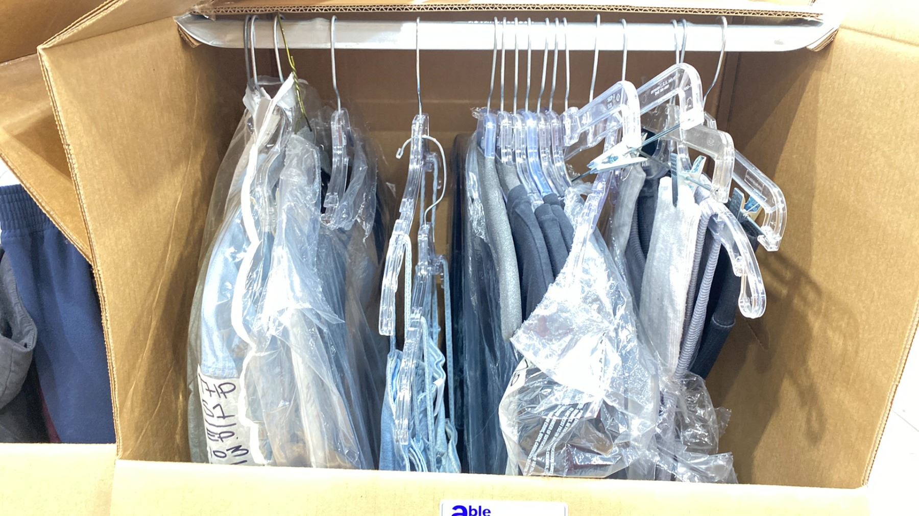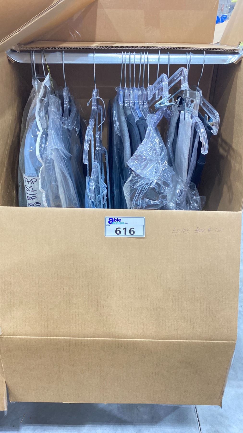 WARDROBE BOX OF ASSORTED CLOTHING (BOX AND ALL CONTENTS MUST BE TAKEN)