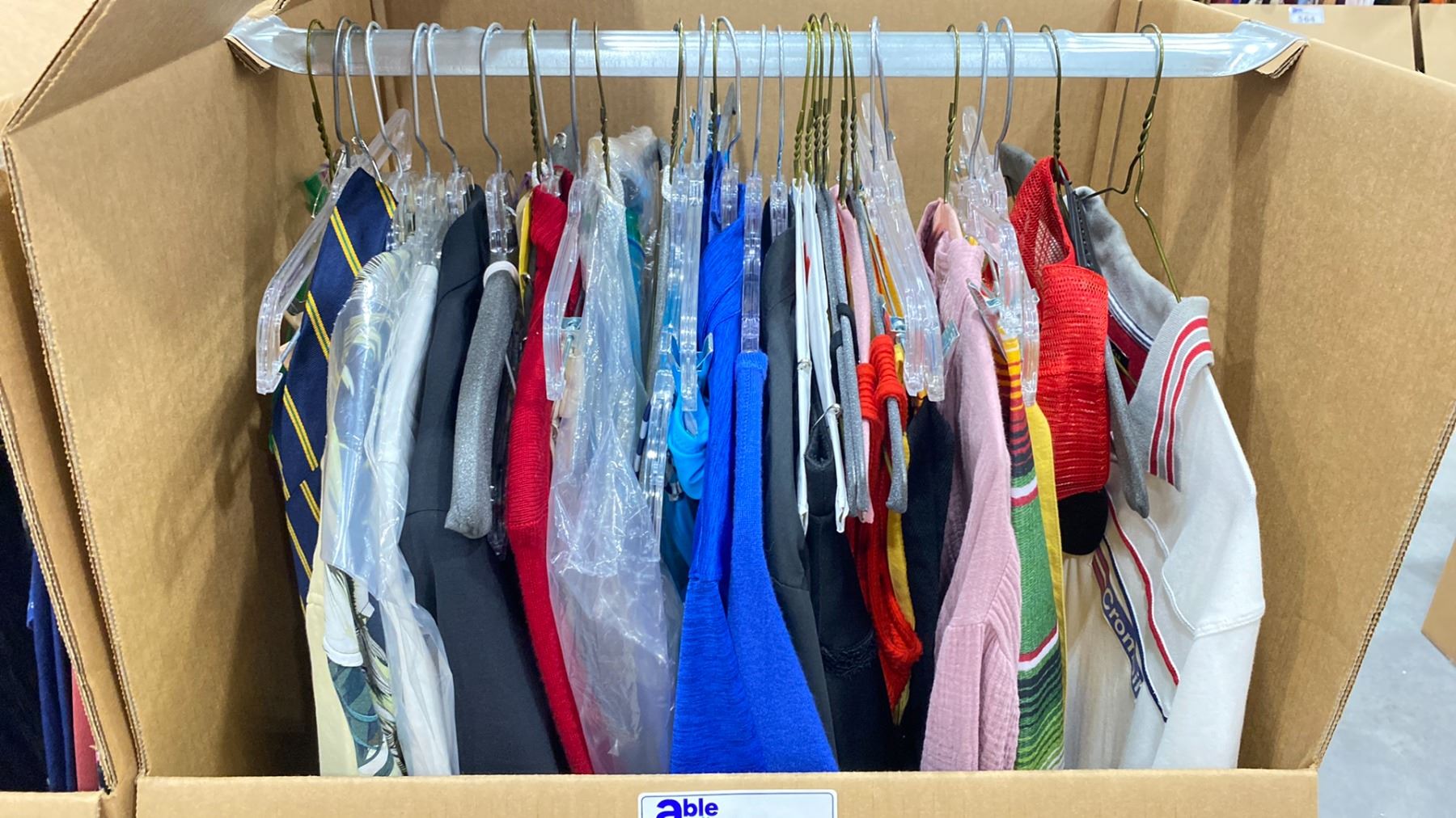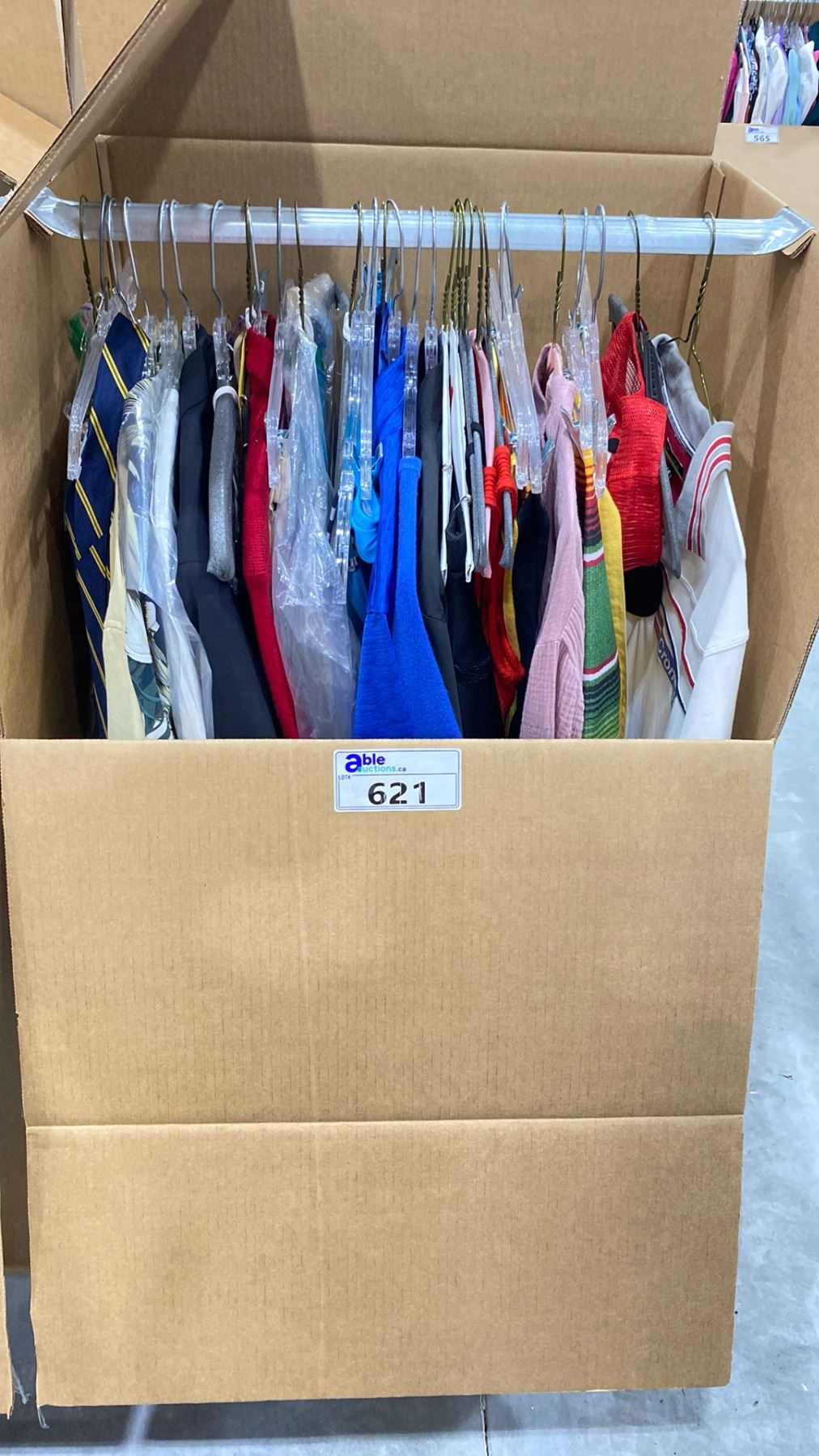 WARDROBE BOX OF ASSORTED CLOTHING (BOX AND ALL CONTENTS MUST BE TAKEN)