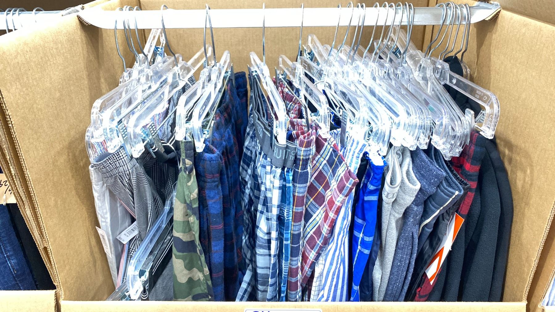 WARDROBE BOX OF ASSORTED CLOTHING (BOX AND ALL CONTENTS MUST BE TAKEN)
