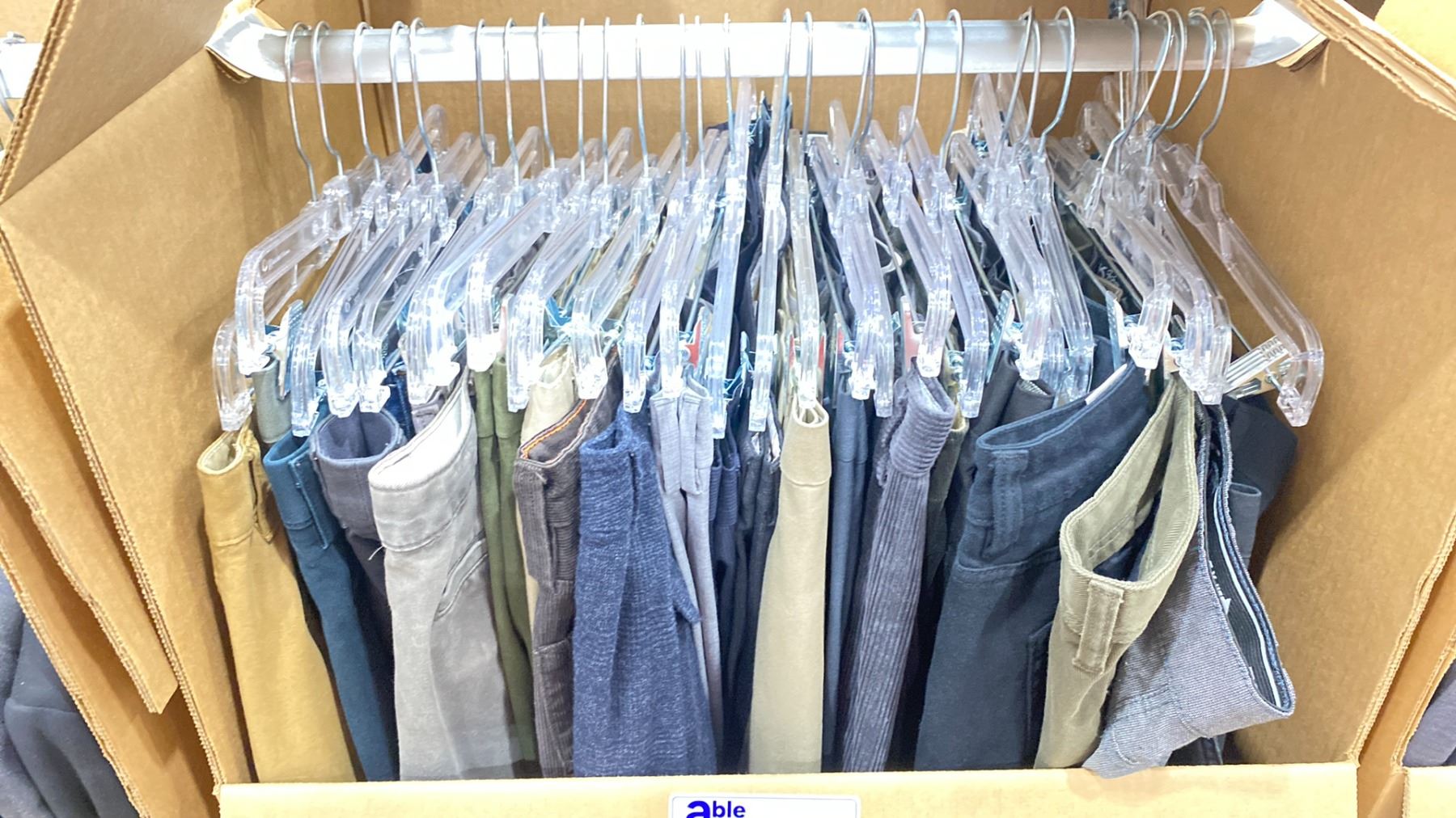 WARDROBE BOX OF ASSORTED CLOTHING (BOX AND ALL CONTENTS MUST BE TAKEN)