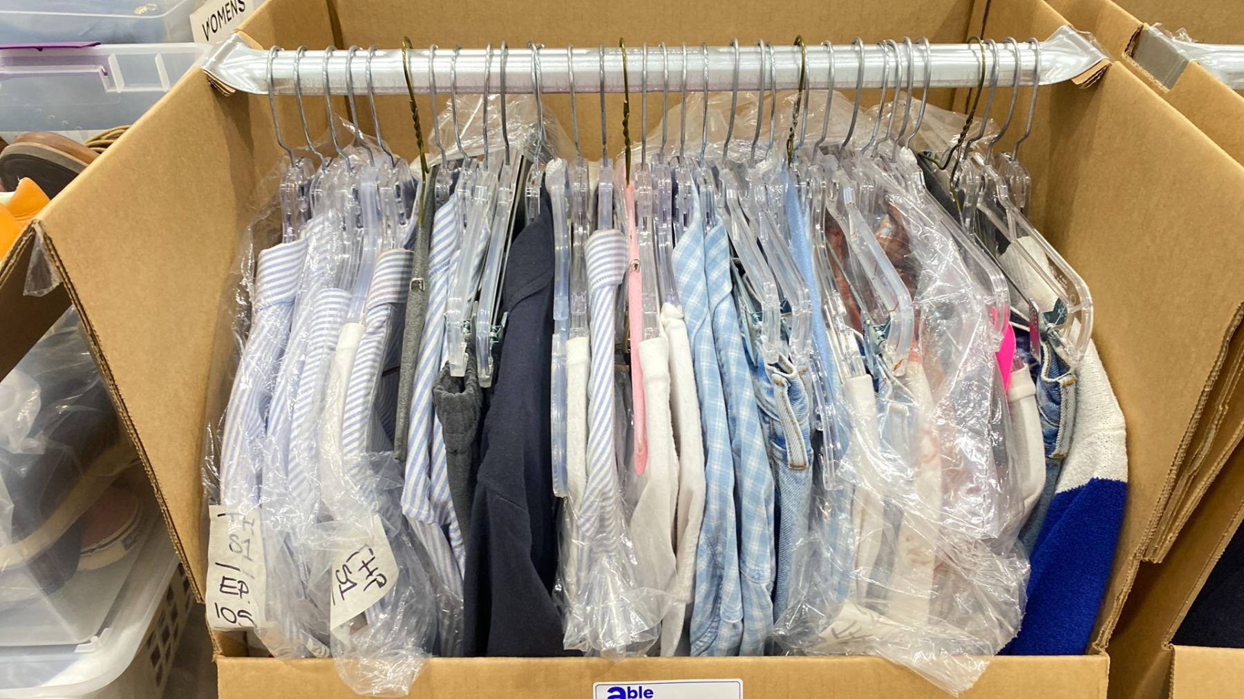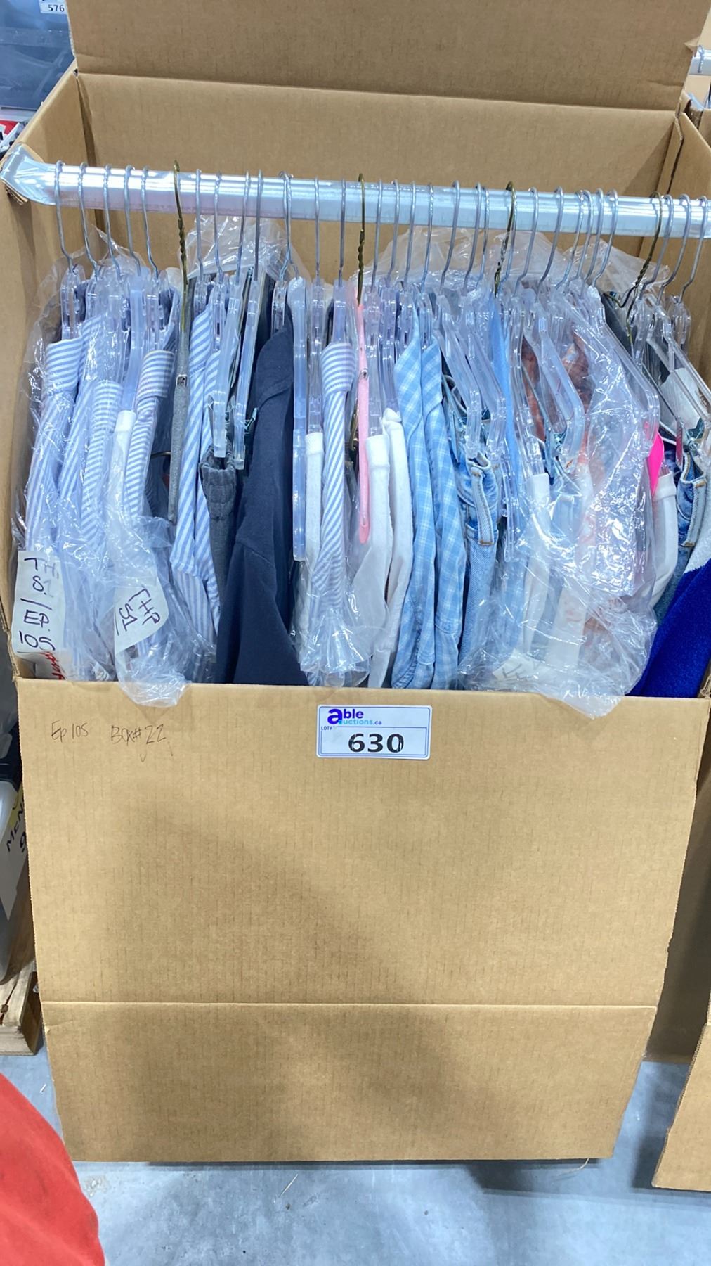 WARDROBE BOX OF ASSORTED CLOTHING (BOX AND ALL CONTENTS MUST BE TAKEN)