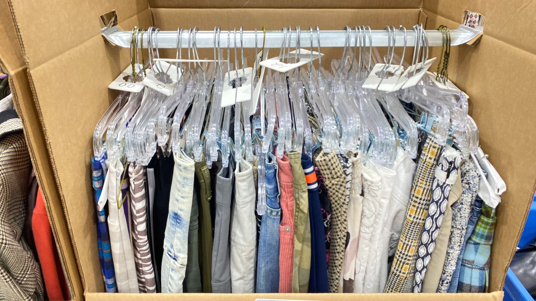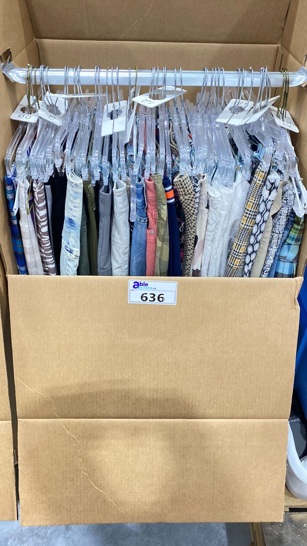 WARDROBE BOX OF ASSORTED CLOTHING (BOX AND ALL CONTENTS MUST BE TAKEN)