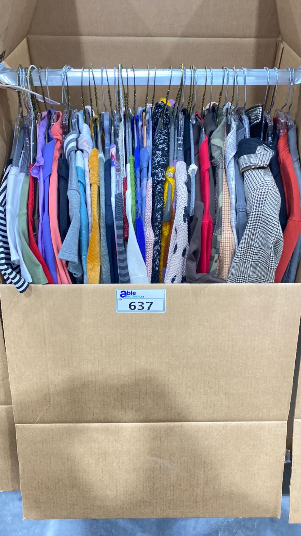 WARDROBE BOX OF ASSORTED CLOTHING (BOX AND ALL CONTENTS MUST BE TAKEN)