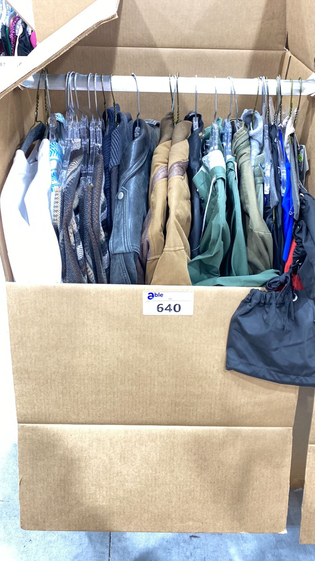 WARDROBE BOX OF ASSORTED CLOTHING (BOX AND ALL CONTENTS MUST BE TAKEN)