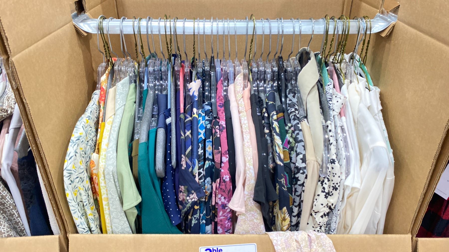 WARDROBE BOX OF ASSORTED CLOTHING (BOX AND ALL CONTENTS MUST BE TAKEN)
