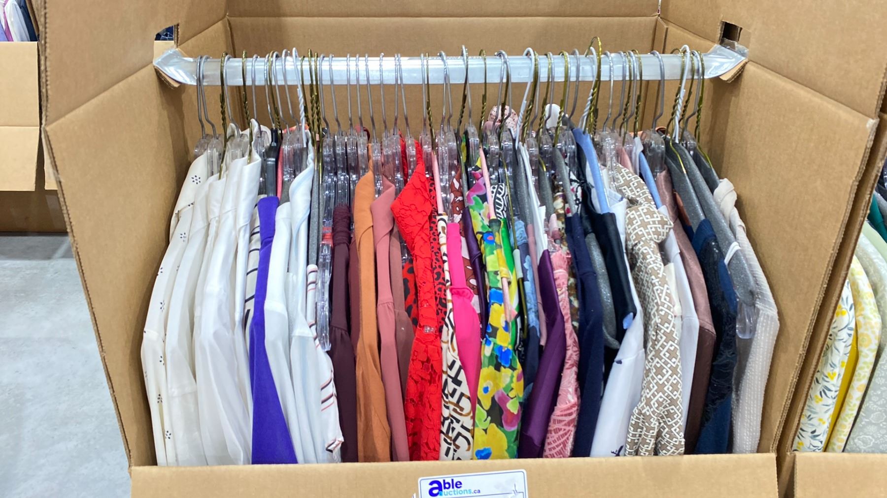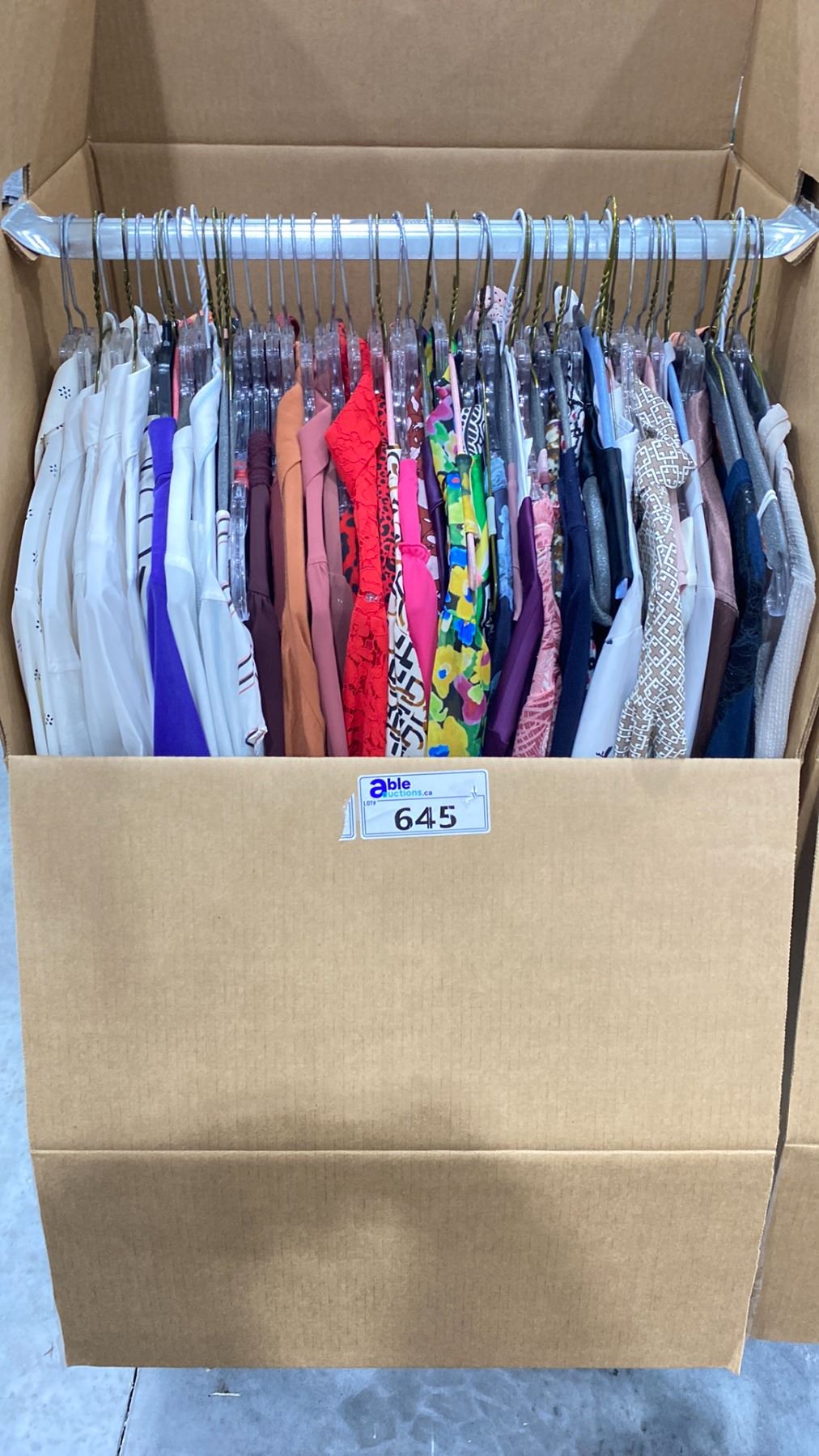 WARDROBE BOX OF ASSORTED CLOTHING (BOX AND ALL CONTENTS MUST BE TAKEN)