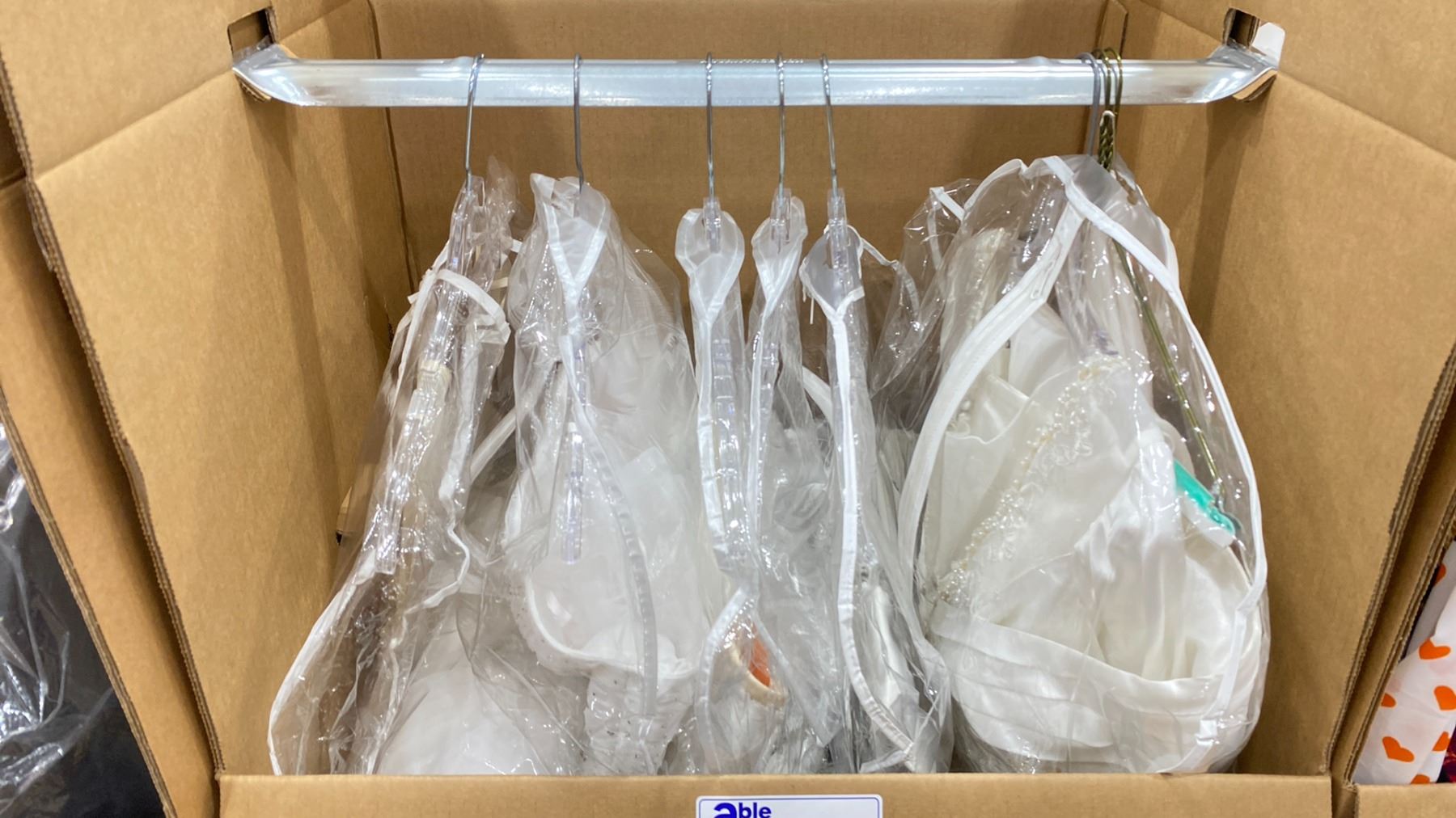 WARDROBE BOX OF ASSORTED CLOTHING (BOX AND ALL CONTENTS MUST BE TAKEN)