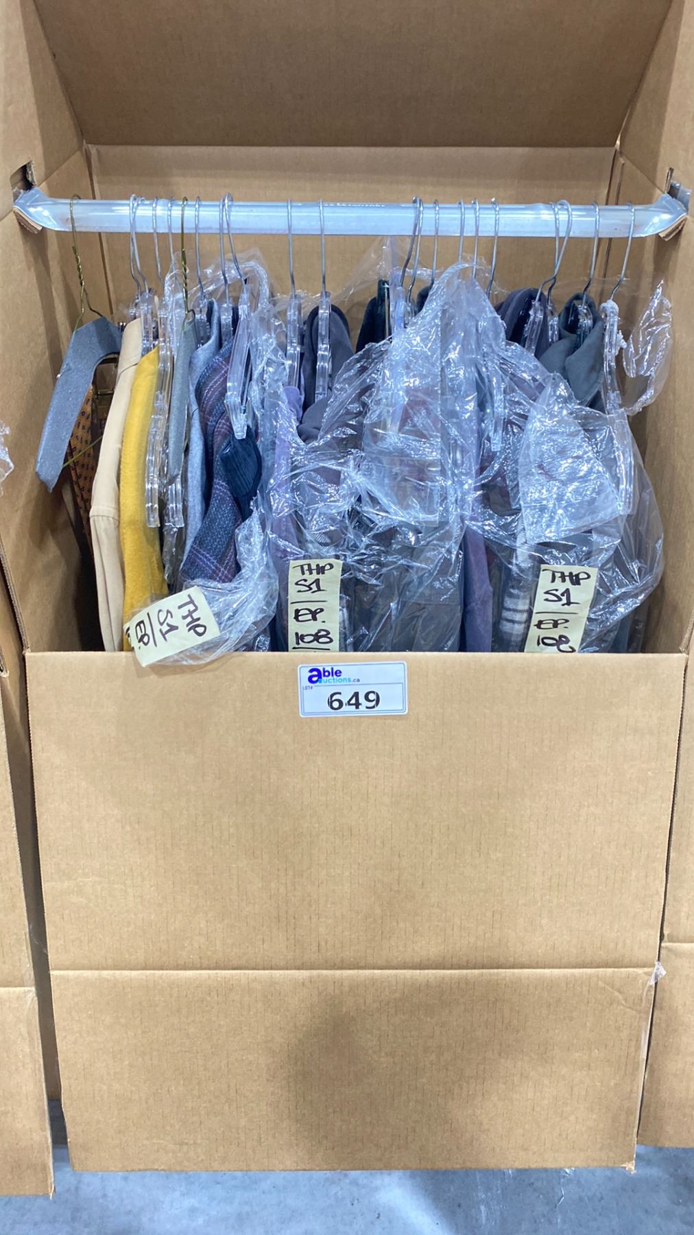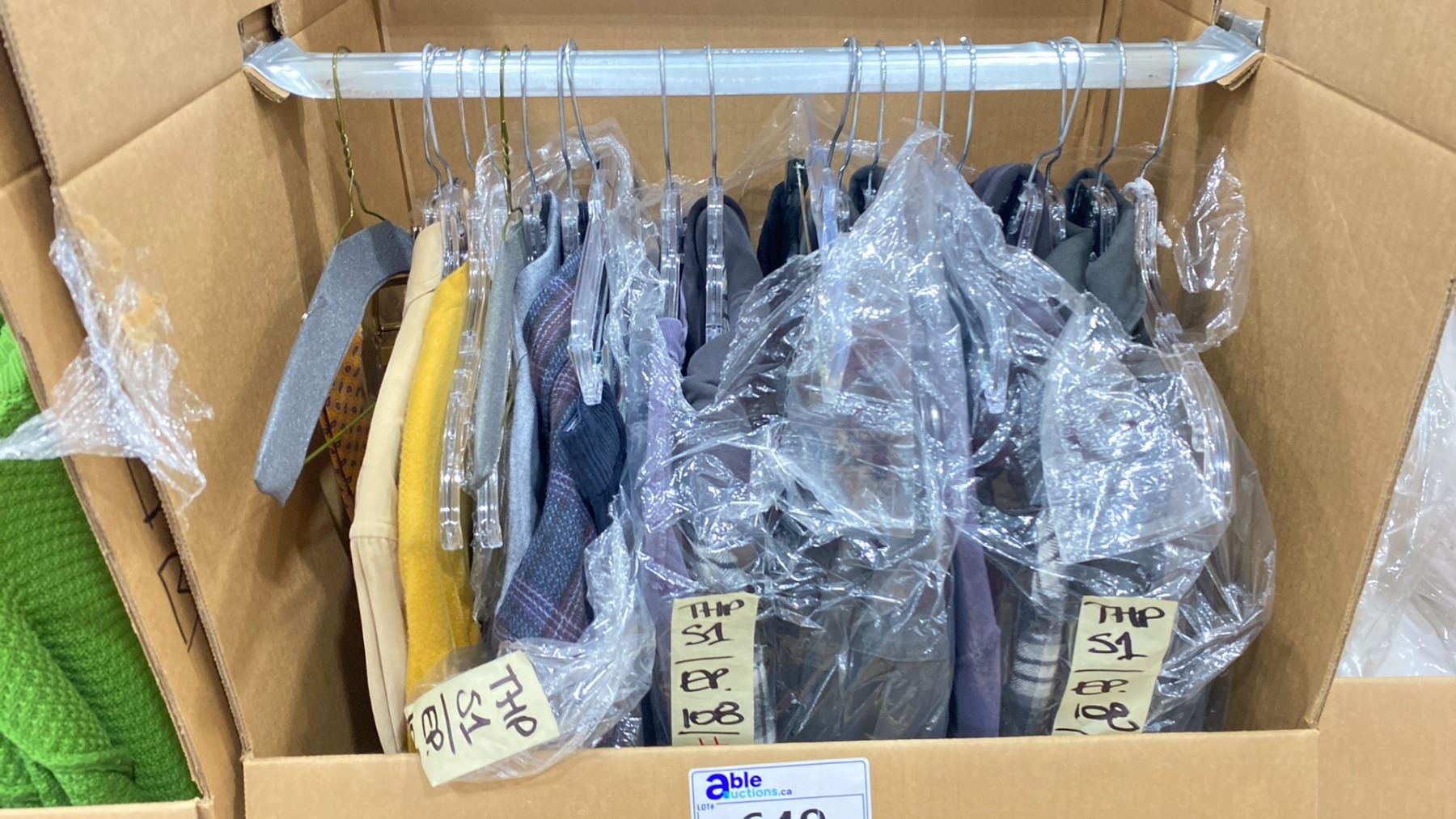 WARDROBE BOX OF ASSORTED CLOTHING (BOX AND ALL CONTENTS MUST BE TAKEN)