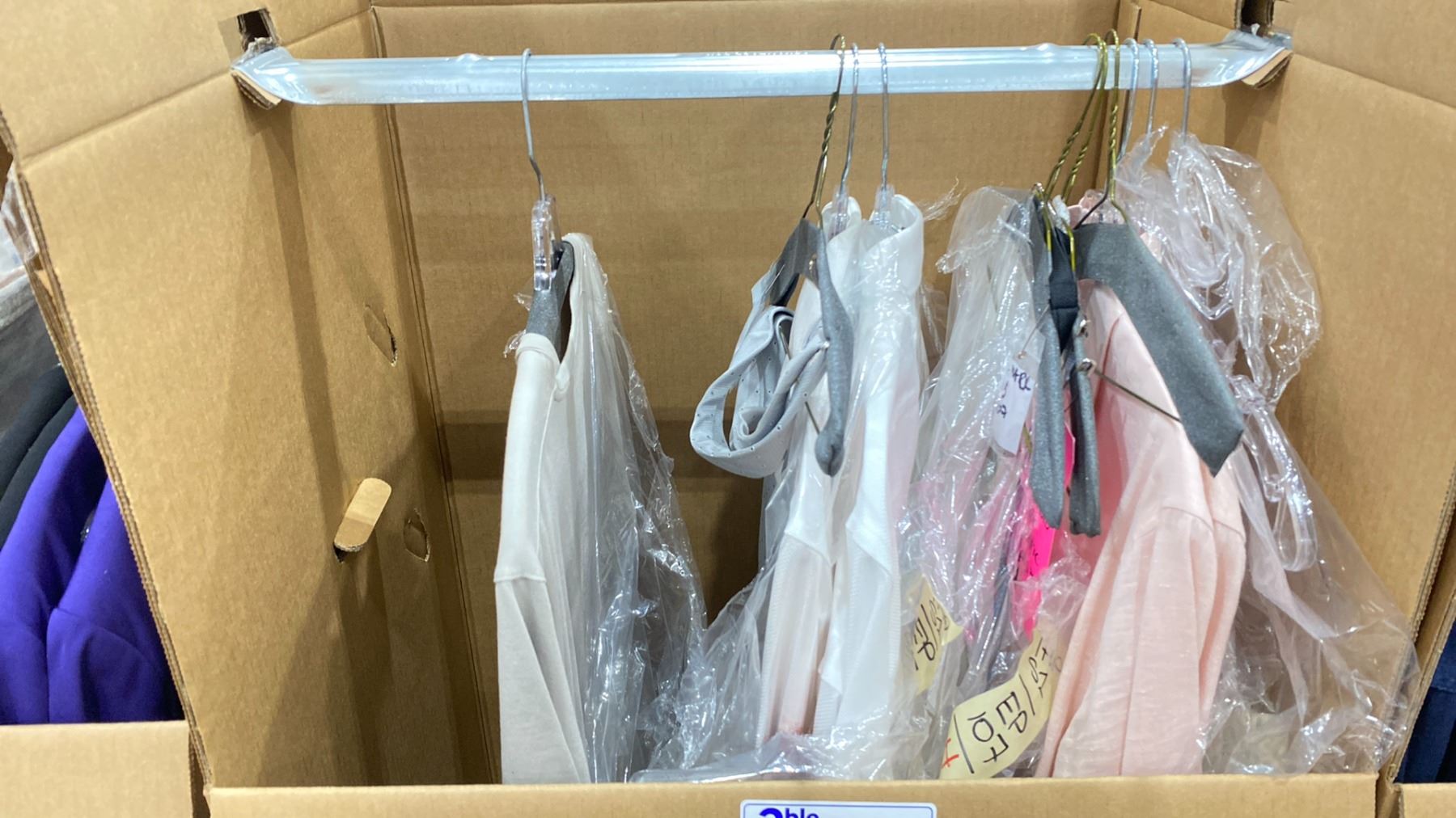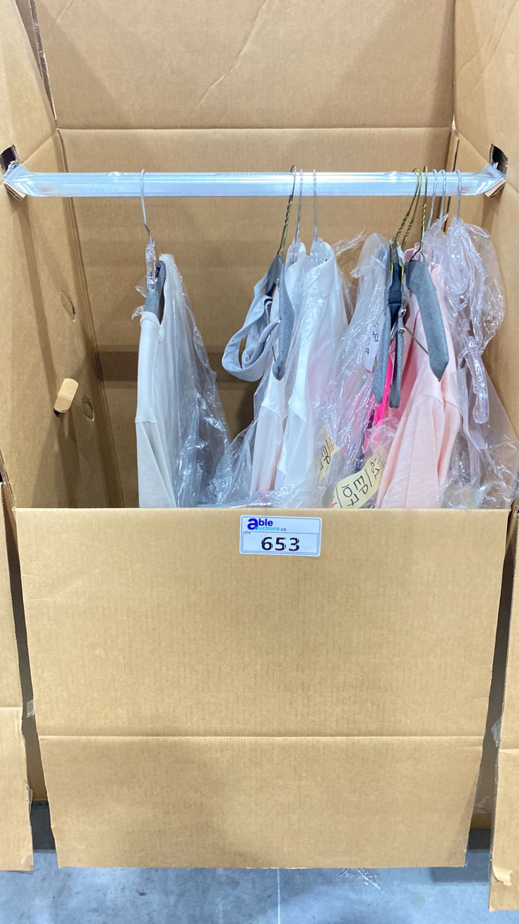 WARDROBE BOX OF ASSORTED CLOTHING (BOX AND ALL CONTENTS MUST BE TAKEN)