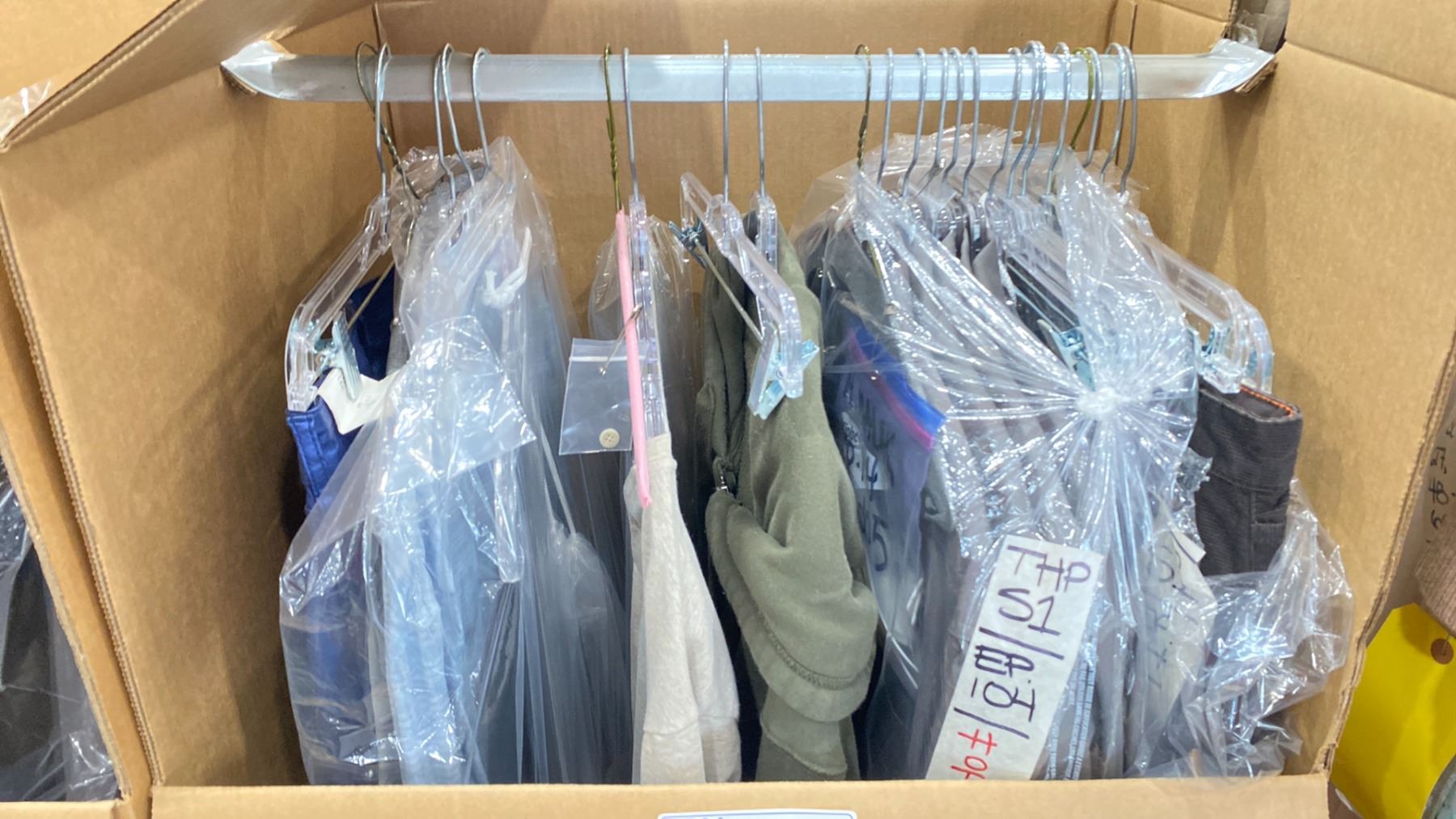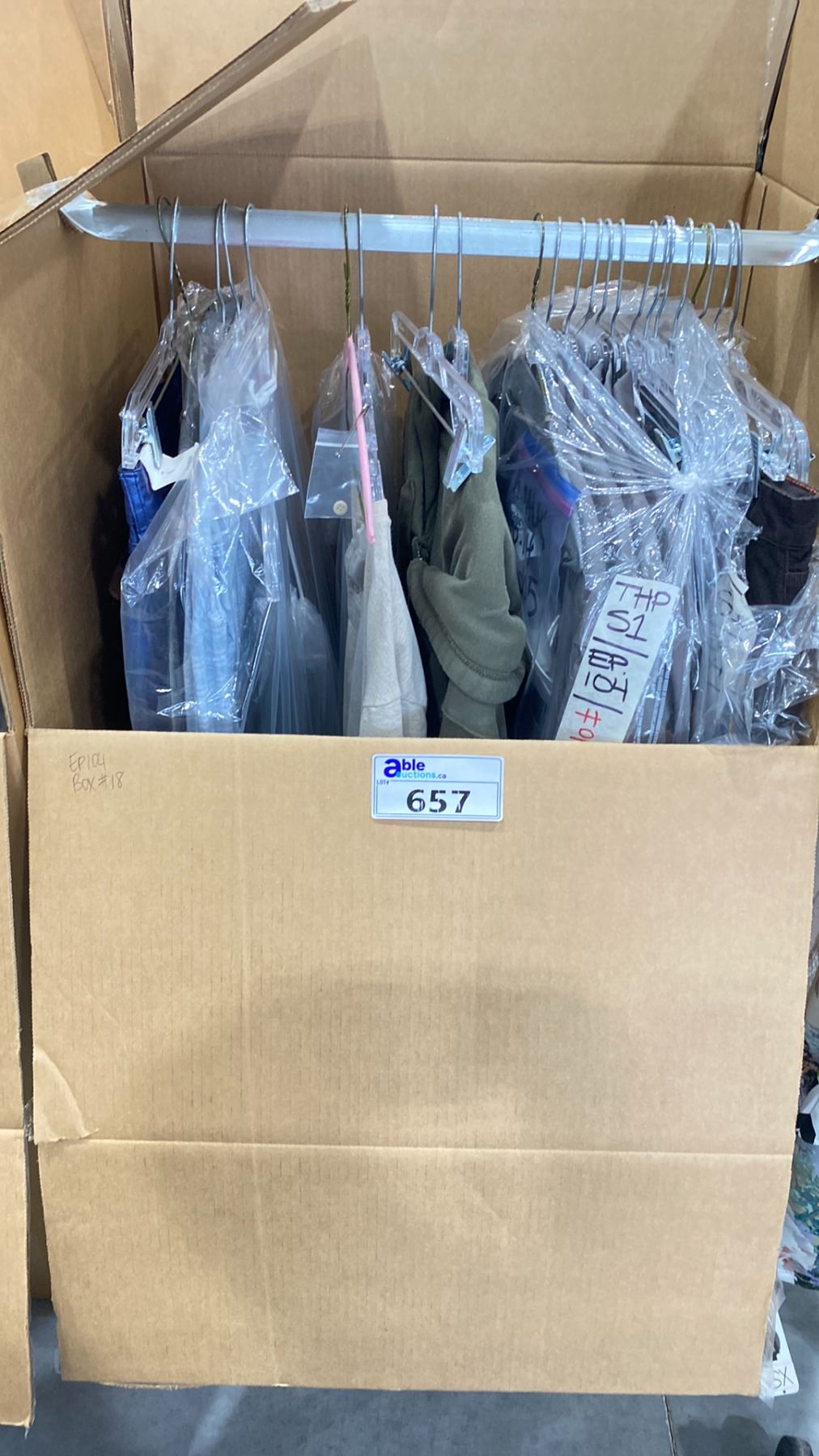 WARDROBE BOX OF ASSORTED CLOTHING (BOX AND ALL CONTENTS MUST BE TAKEN)