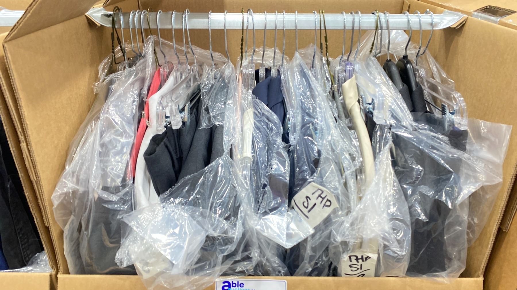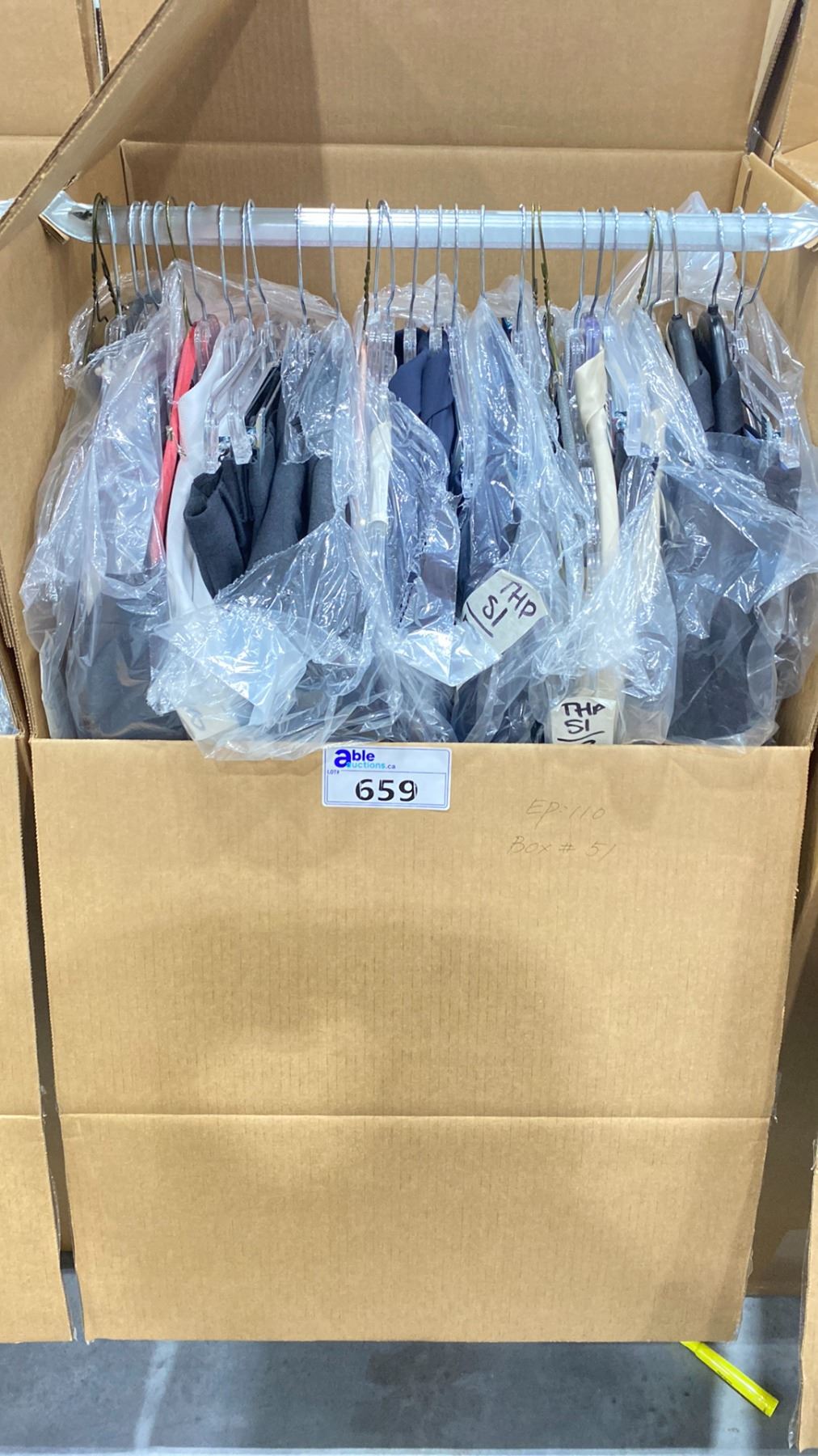 WARDROBE BOX OF ASSORTED CLOTHING (BOX AND ALL CONTENTS MUST BE TAKEN)