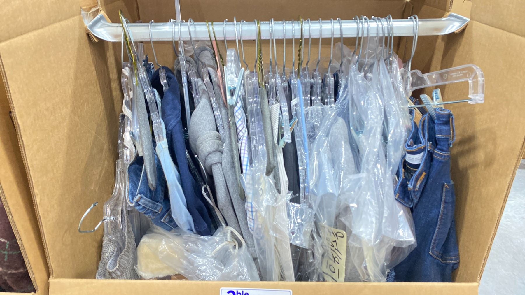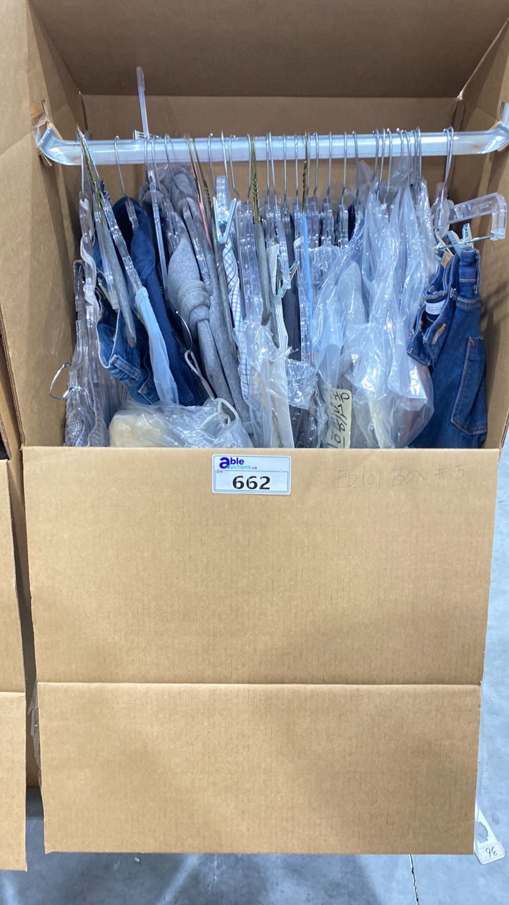 WARDROBE BOX OF ASSORTED CLOTHING (BOX AND ALL CONTENTS MUST BE TAKEN)