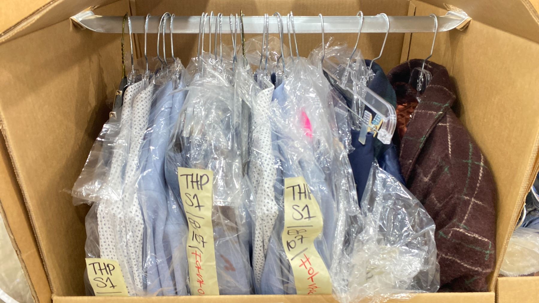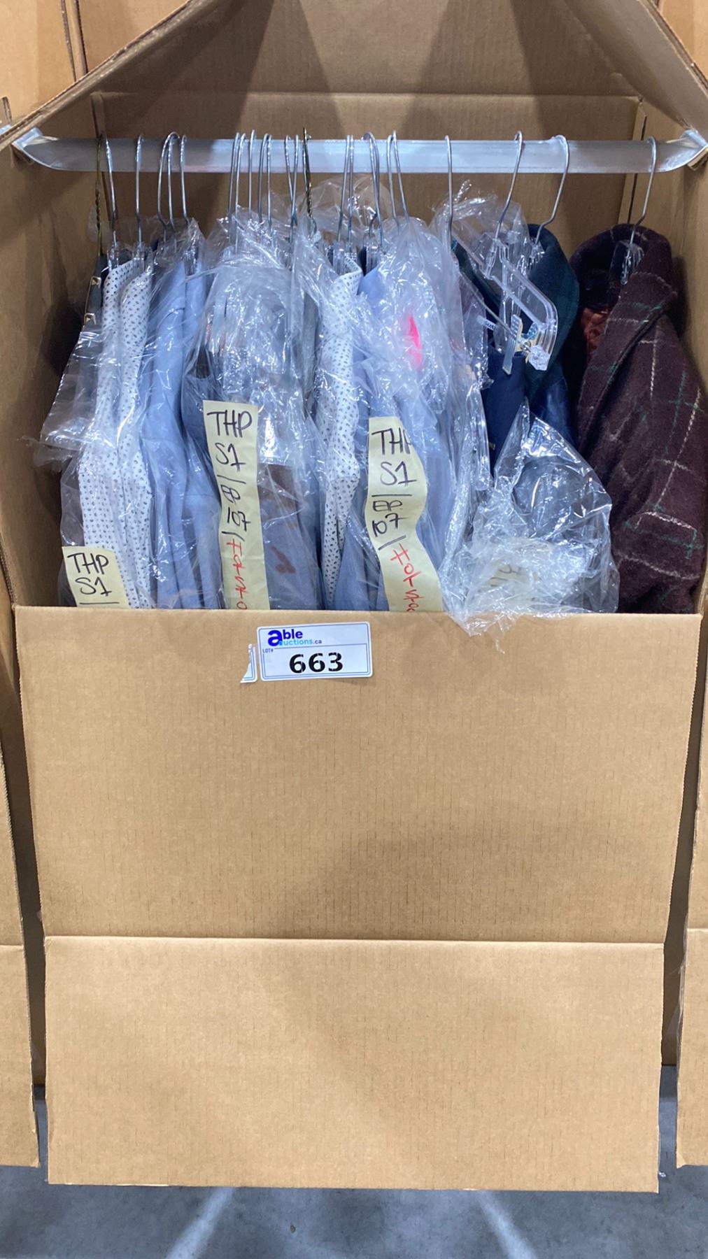 WARDROBE BOX OF ASSORTED CLOTHING (BOX AND ALL CONTENTS MUST BE TAKEN)