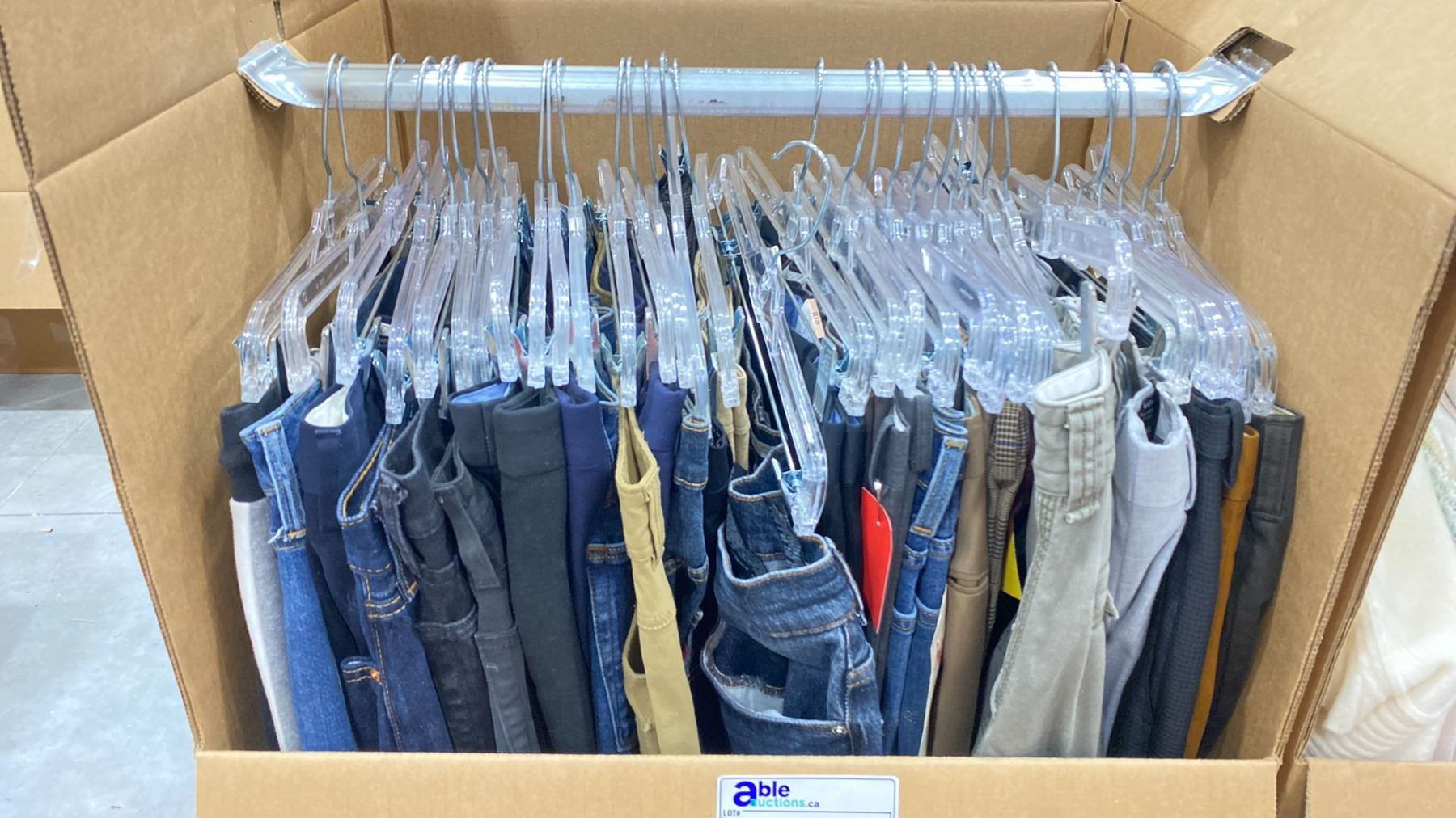 WARDROBE BOX OF ASSORTED CLOTHING (BOX AND ALL CONTENTS MUST BE TAKEN)