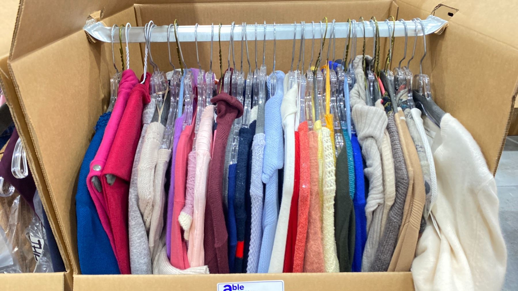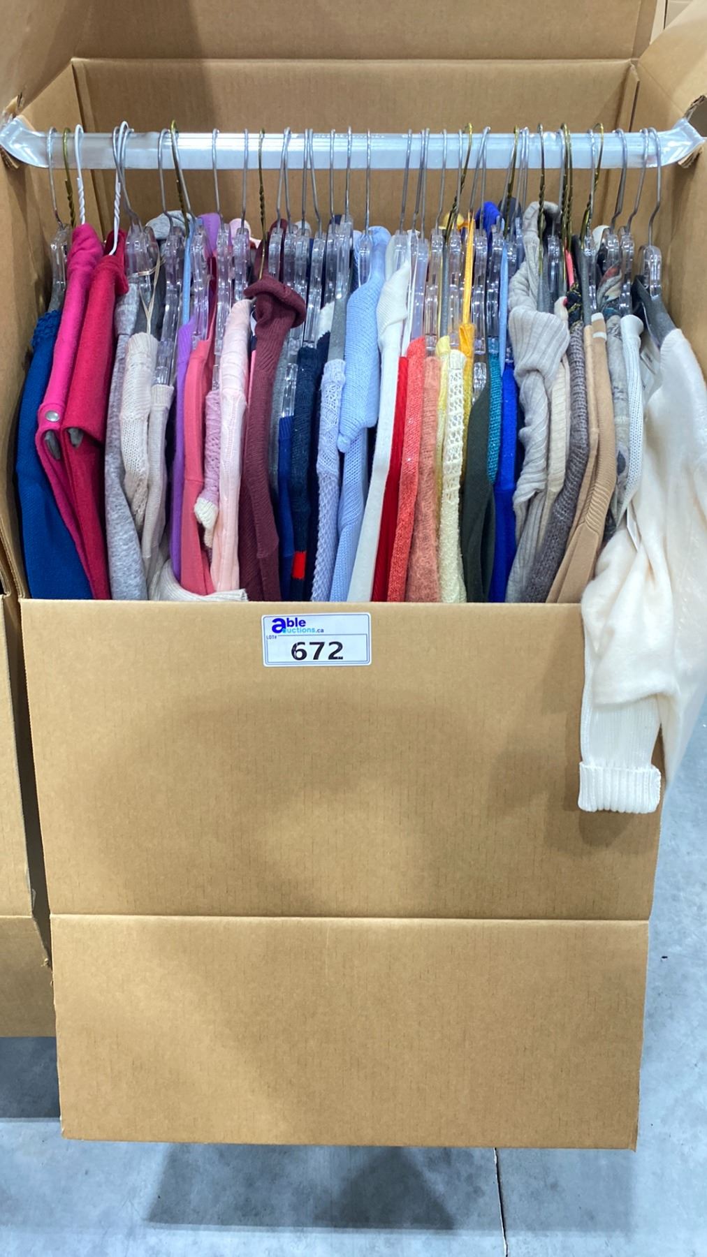 WARDROBE BOX OF ASSORTED CLOTHING (BOX AND ALL CONTENTS MUST BE TAKEN)