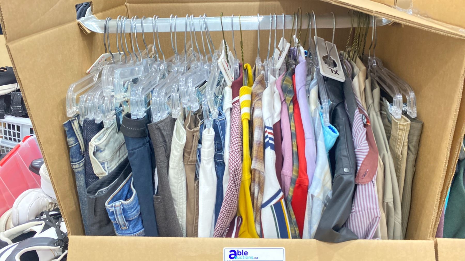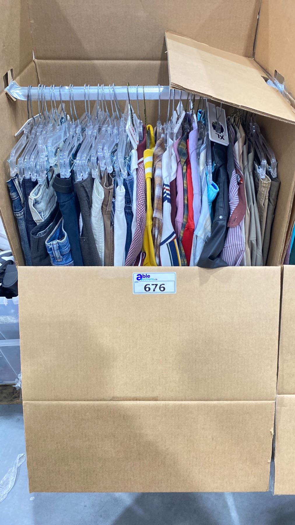 WARDROBE BOX OF ASSORTED CLOTHING (BOX AND ALL CONTENTS MUST BE TAKEN)