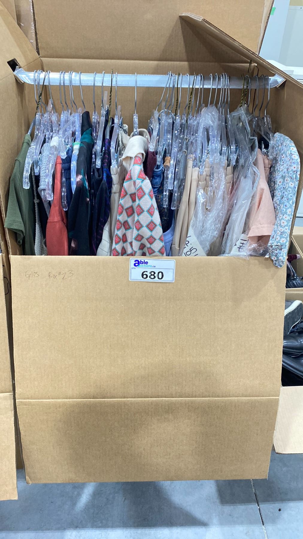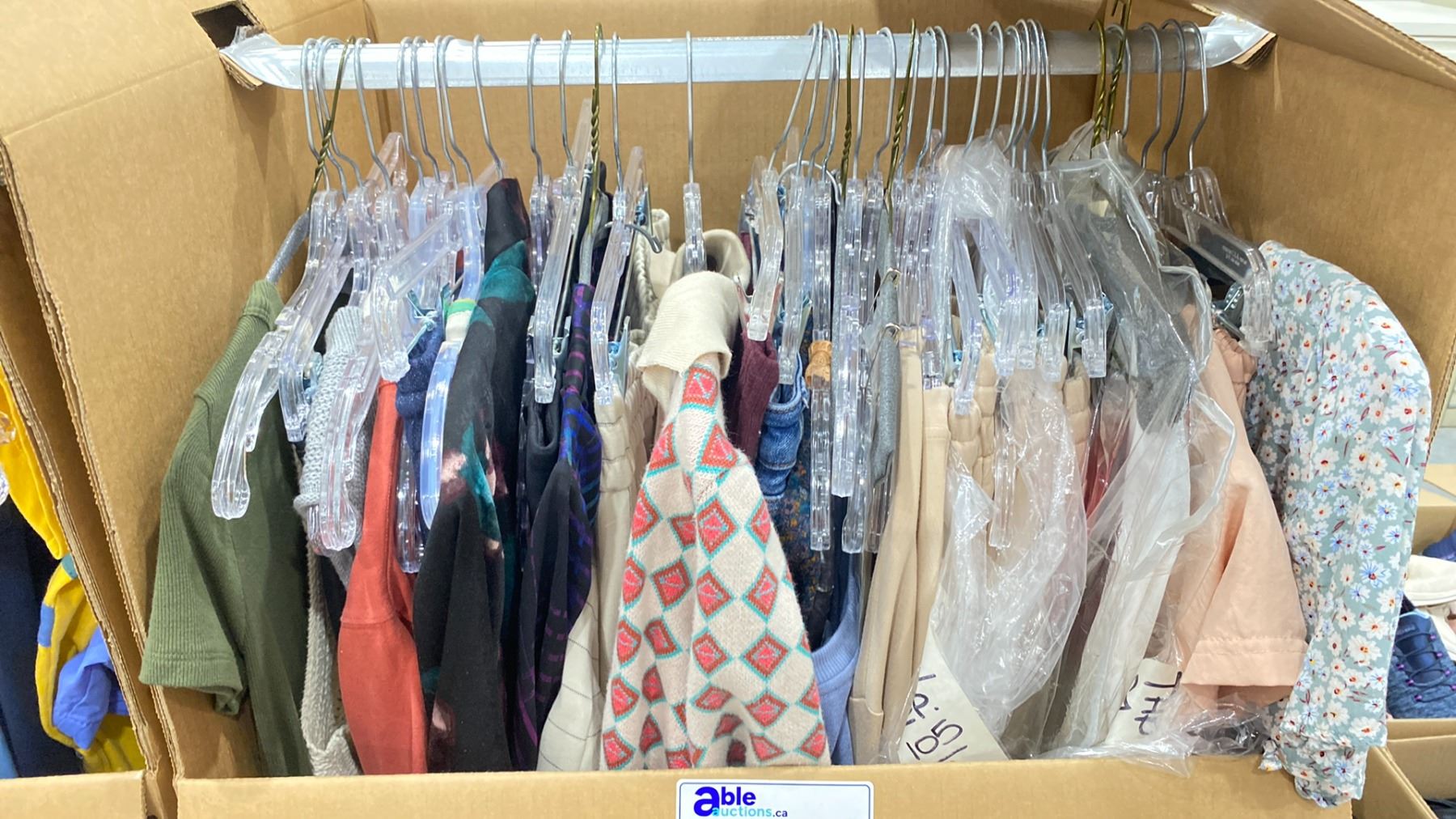 WARDROBE BOX OF ASSORTED CLOTHING (BOX AND ALL CONTENTS MUST BE TAKEN)