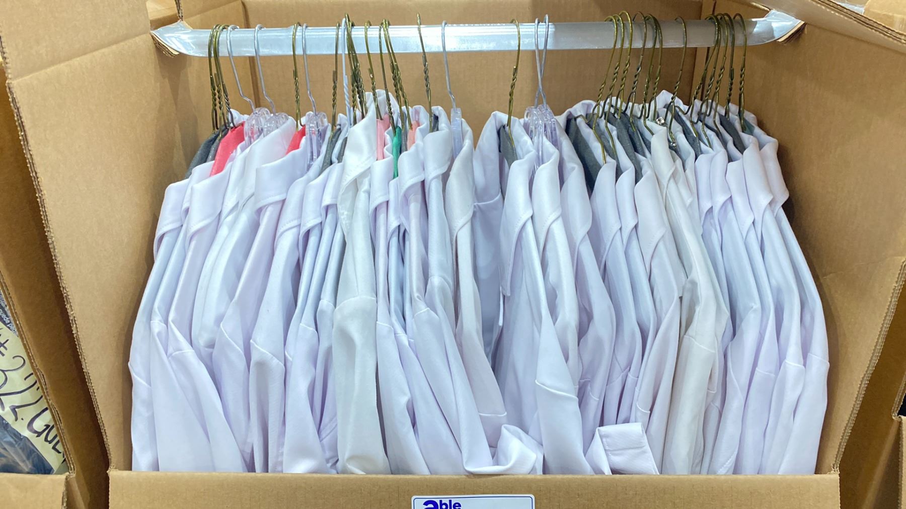 WARDROBE BOX OF ASSORTED CLOTHING (BOX AND ALL CONTENTS MUST BE TAKEN)