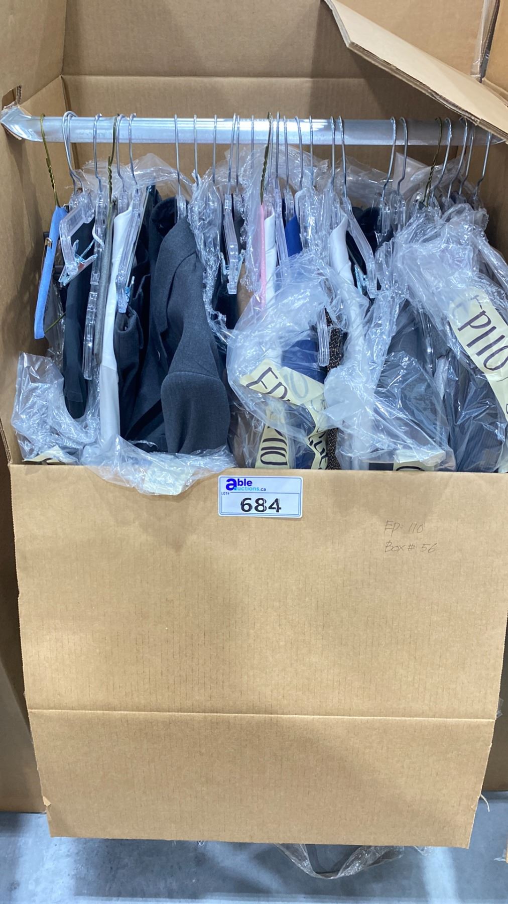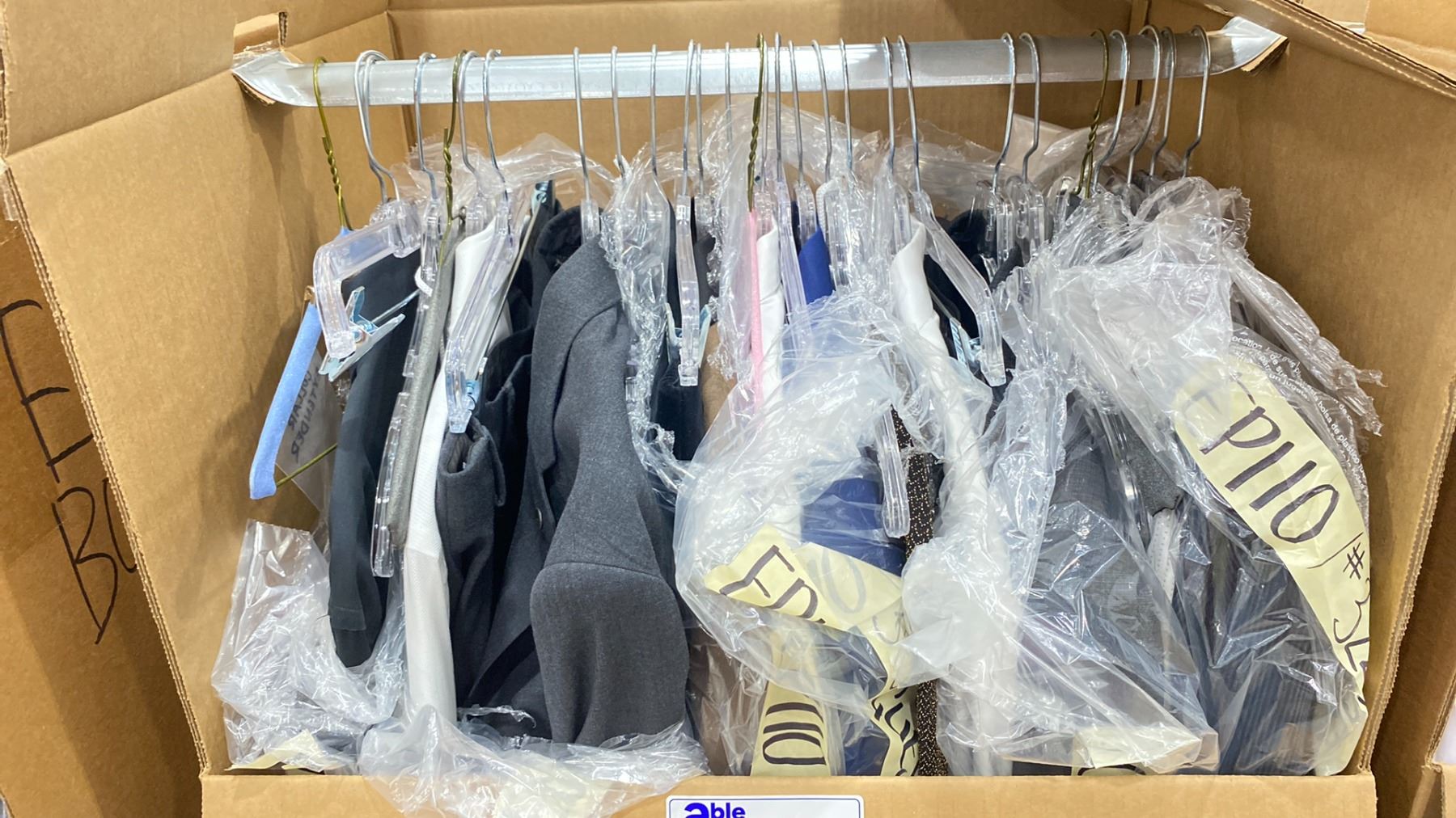 WARDROBE BOX OF ASSORTED CLOTHING (BOX AND ALL CONTENTS MUST BE TAKEN)