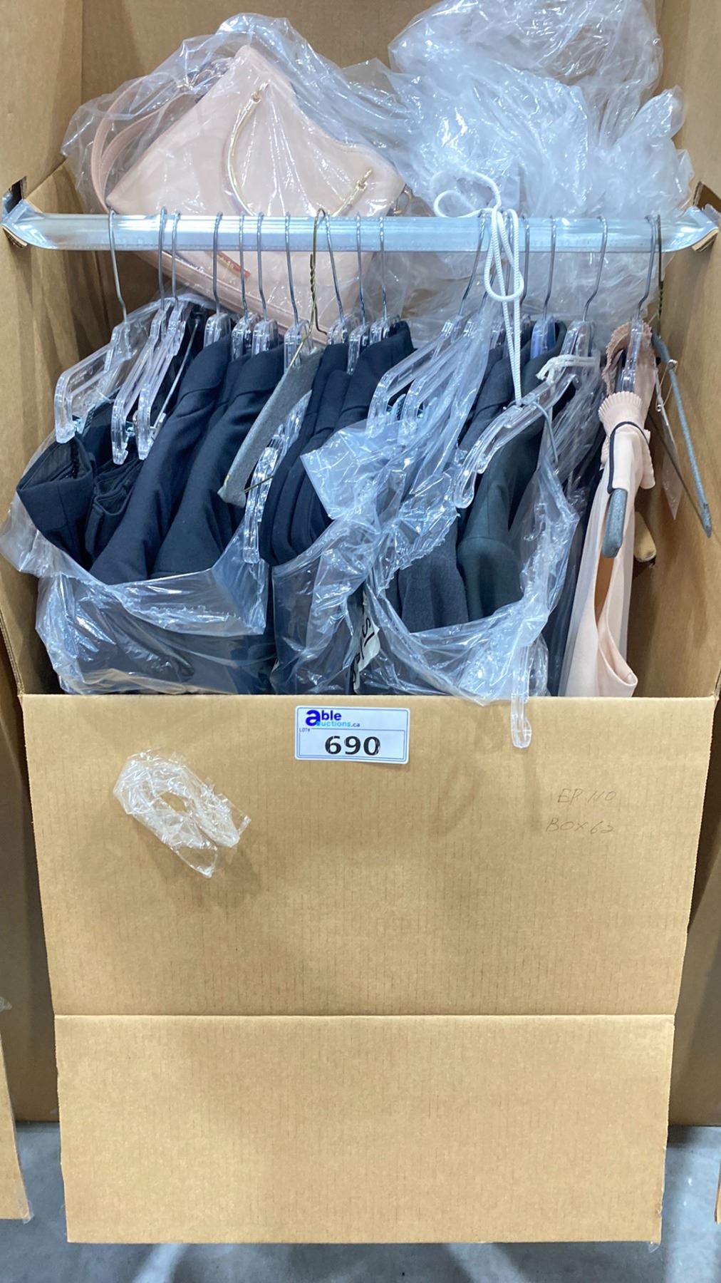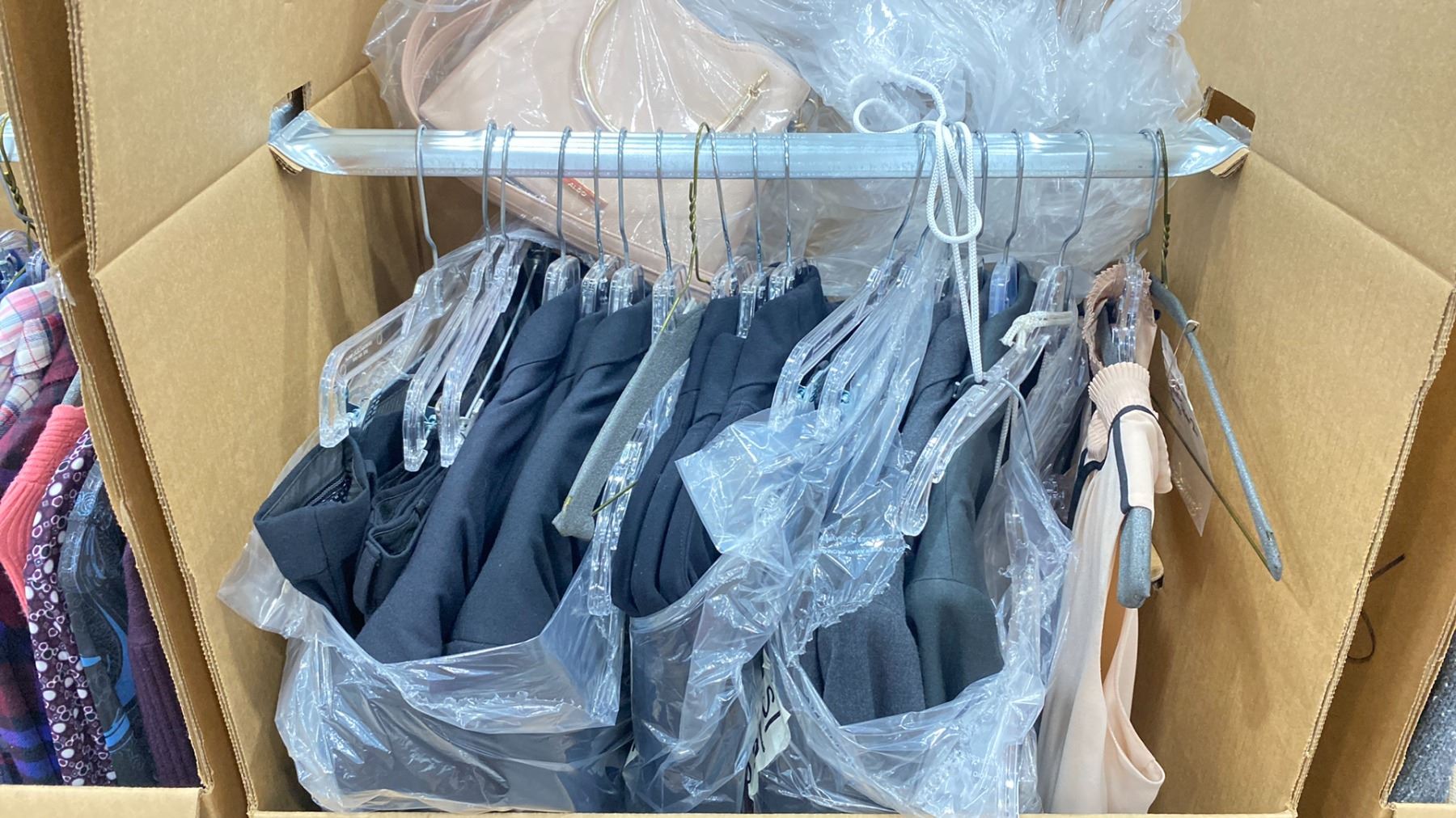 WARDROBE BOX OF ASSORTED CLOTHING (BOX AND ALL CONTENTS MUST BE TAKEN)