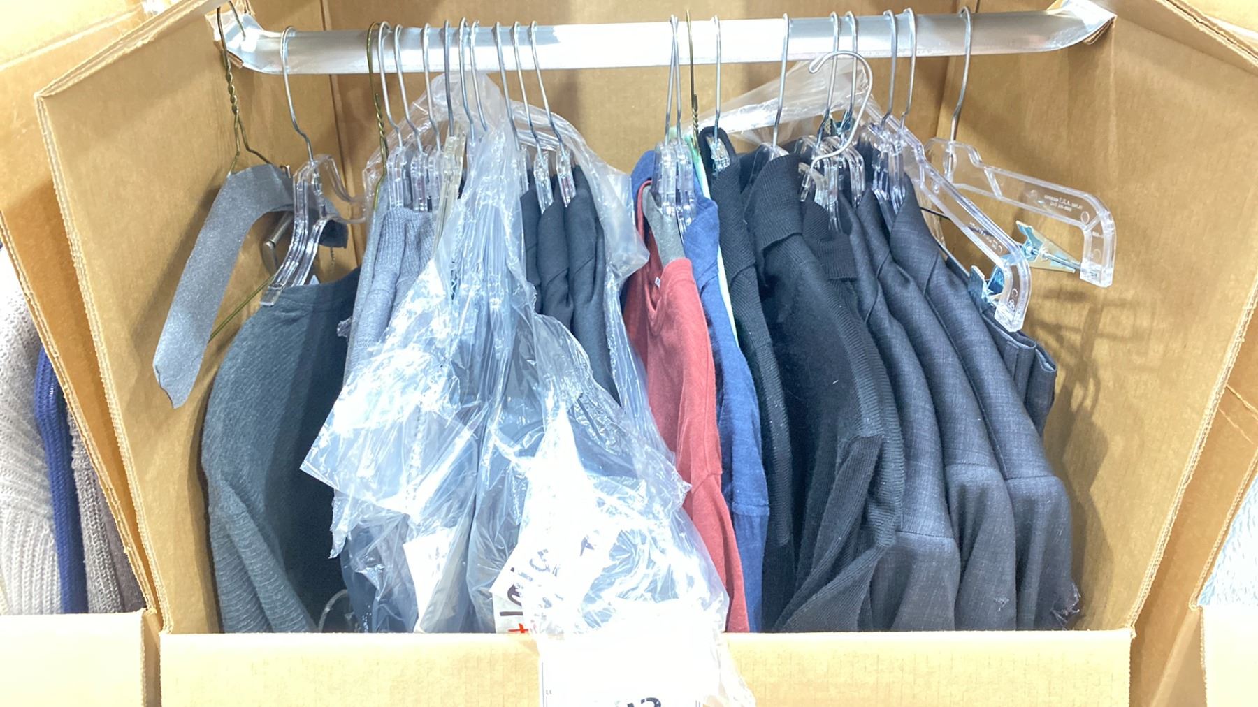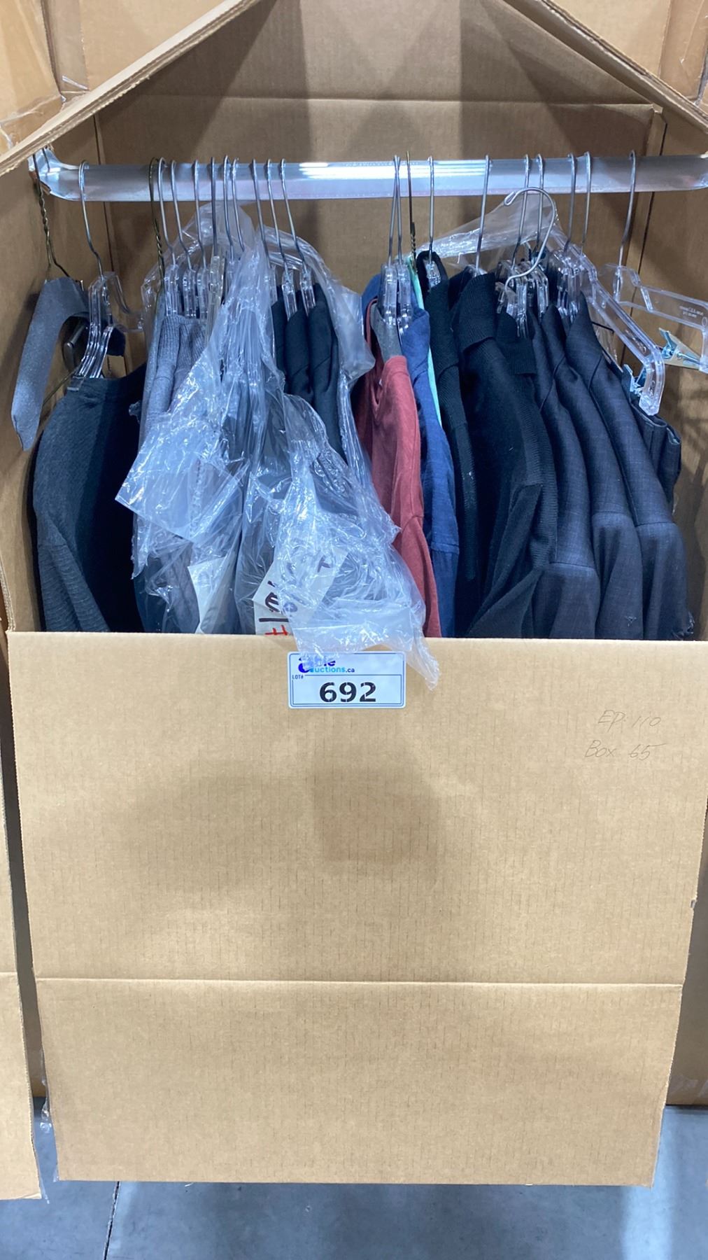 WARDROBE BOX OF ASSORTED CLOTHING (BOX AND ALL CONTENTS MUST BE TAKEN)