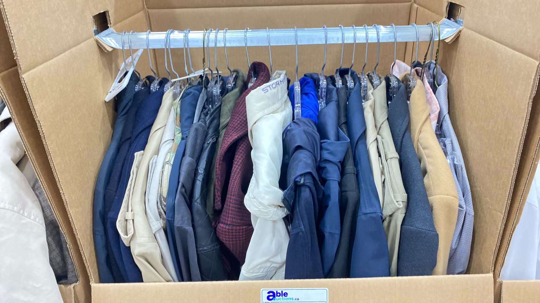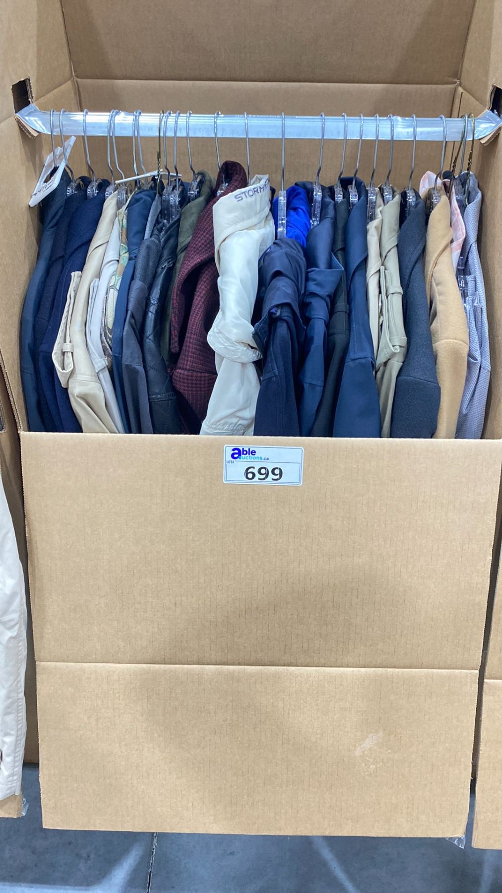 WARDROBE BOX OF ASSORTED CLOTHING (BOX AND ALL CONTENTS MUST BE TAKEN)