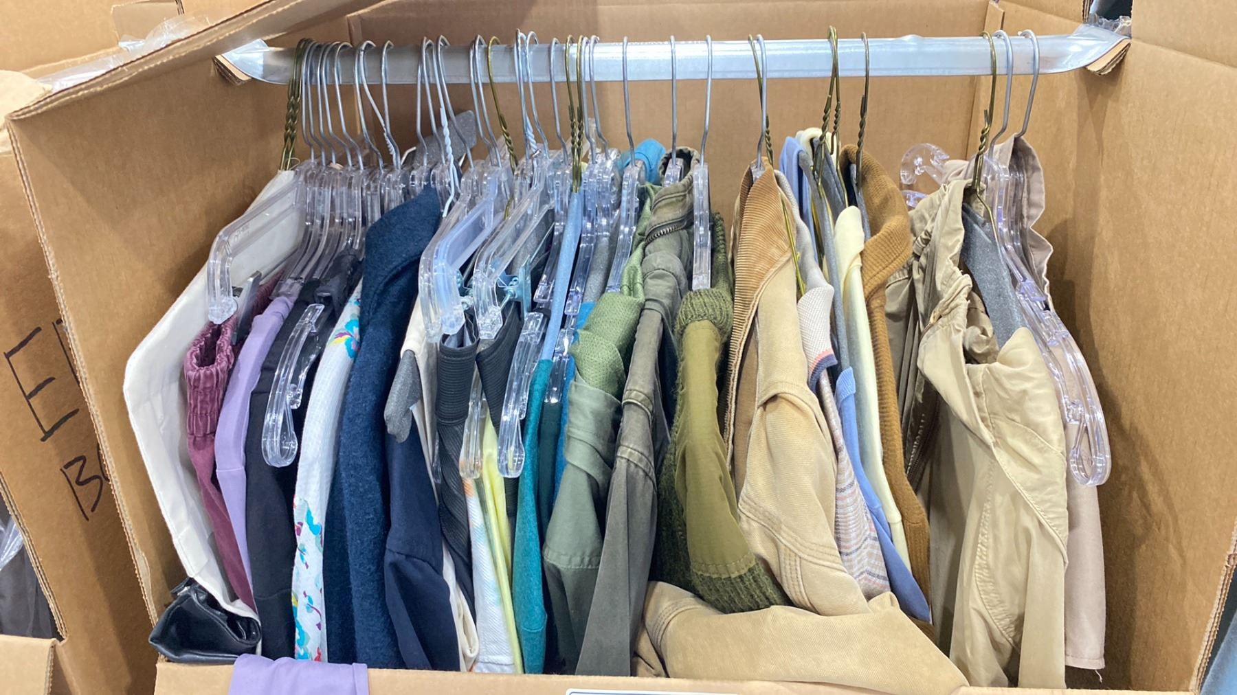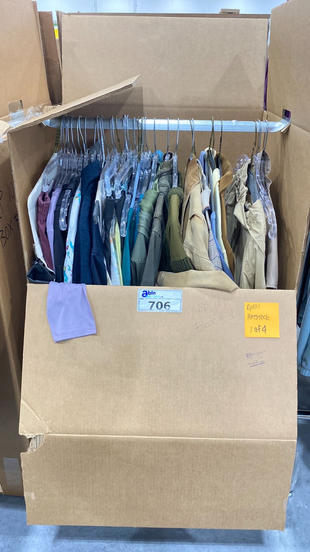 WARDROBE BOX OF ASSORTED CLOTHING (BOX AND ALL CONTENTS MUST BE TAKEN)