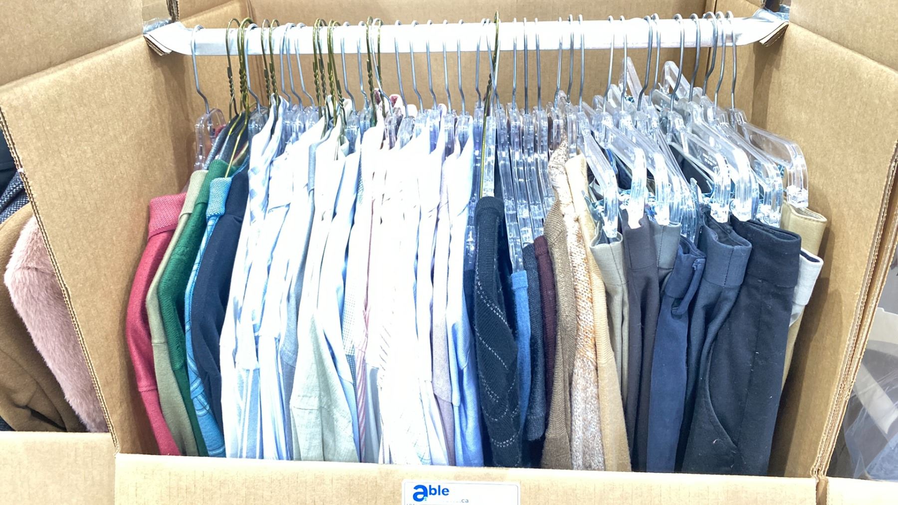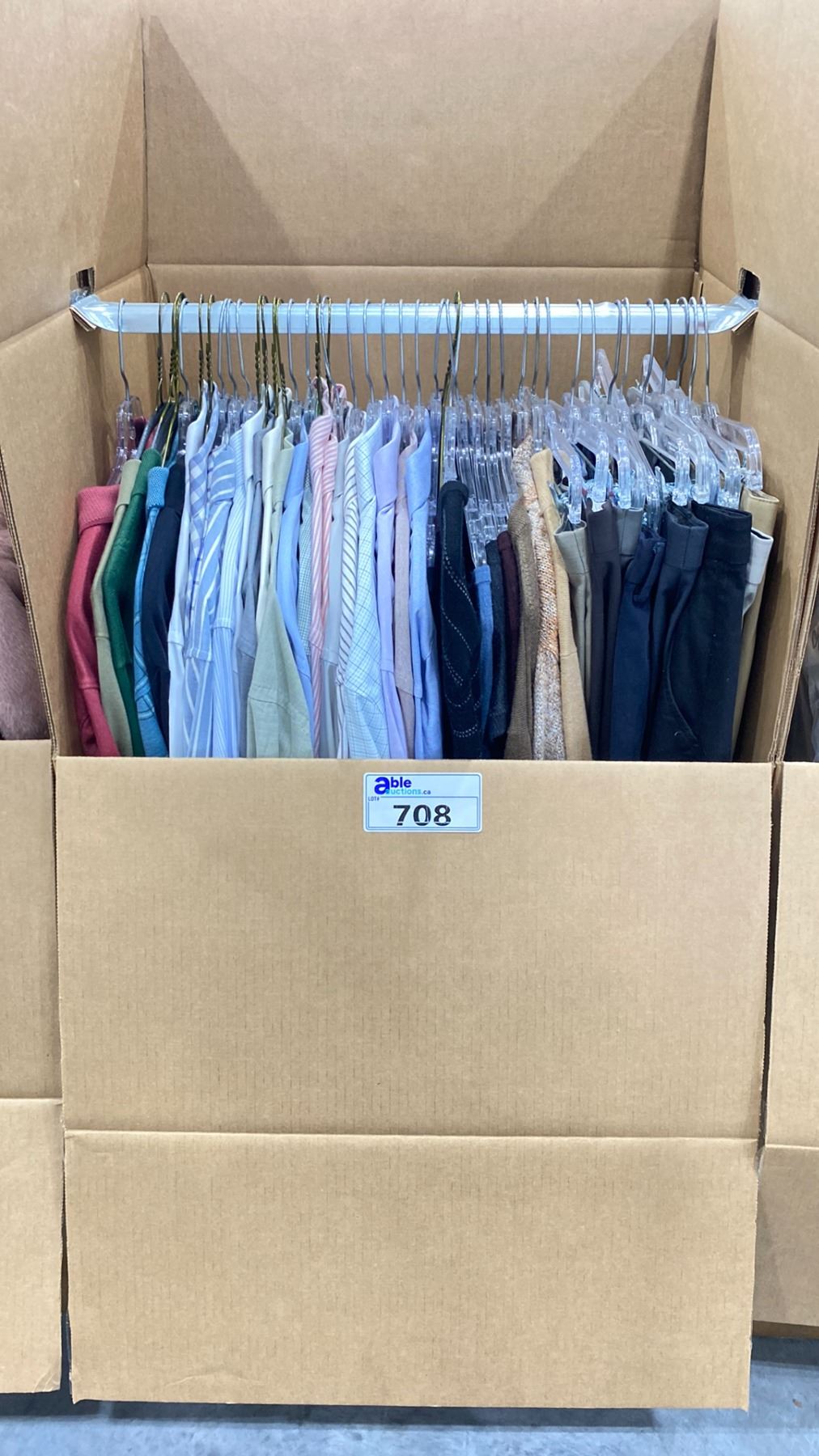WARDROBE BOX OF ASSORTED CLOTHING (BOX AND ALL CONTENTS MUST BE TAKEN)