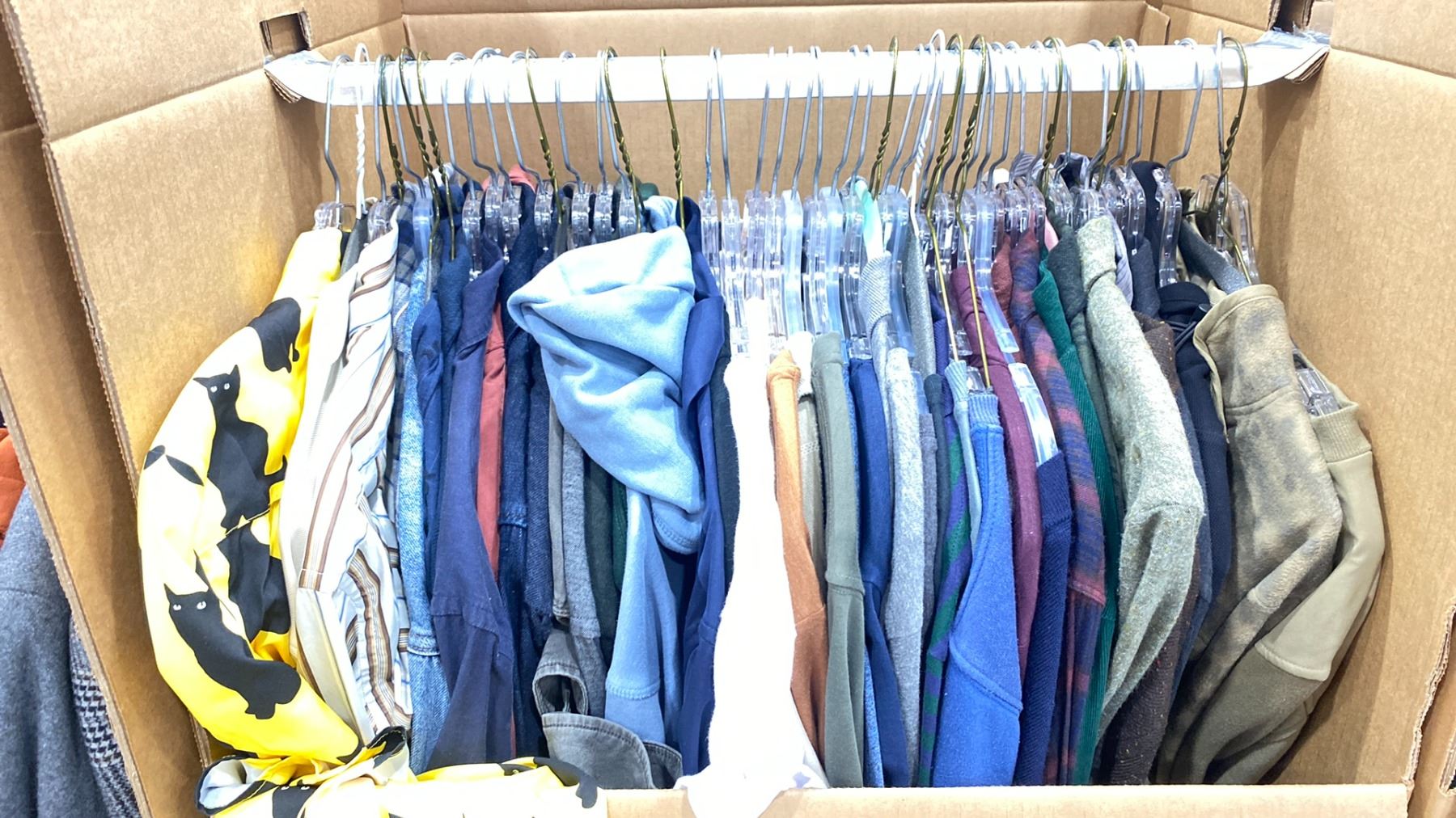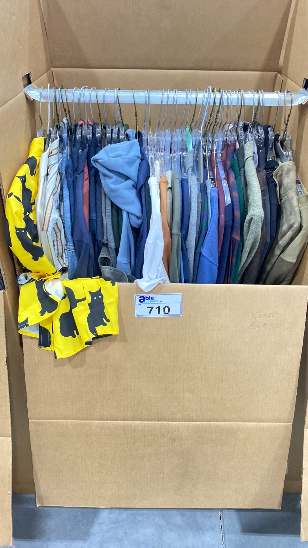 WARDROBE BOX OF ASSORTED CLOTHING (BOX AND ALL CONTENTS MUST BE TAKEN)