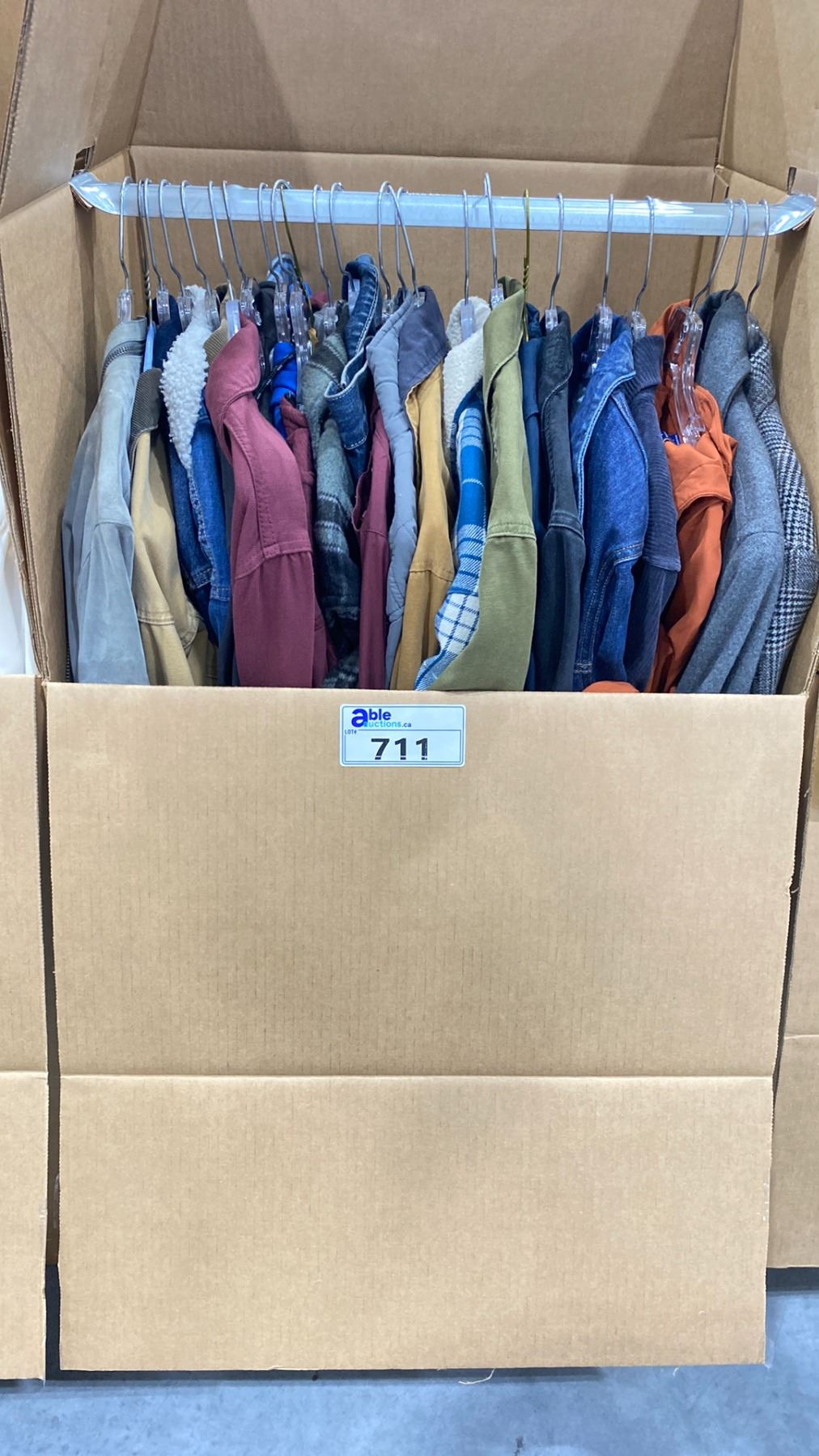 WARDROBE BOX OF ASSORTED CLOTHING (BOX AND ALL CONTENTS MUST BE TAKEN)