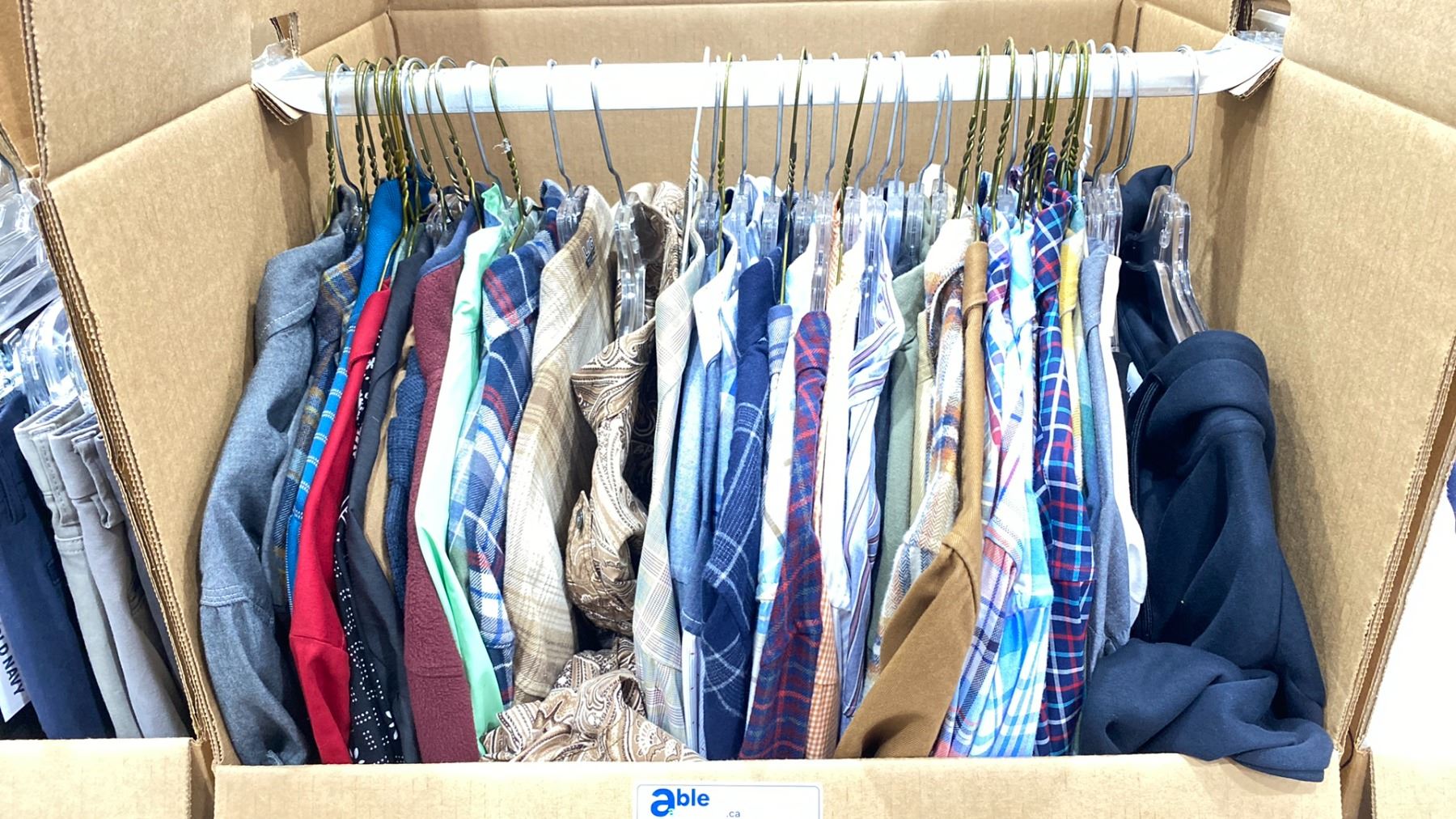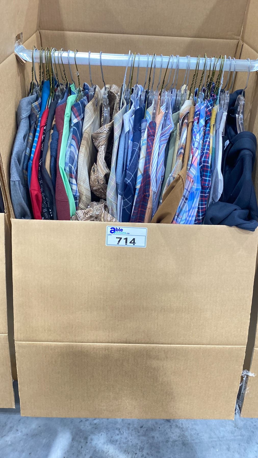 WARDROBE BOX OF ASSORTED CLOTHING (BOX AND ALL CONTENTS MUST BE TAKEN)