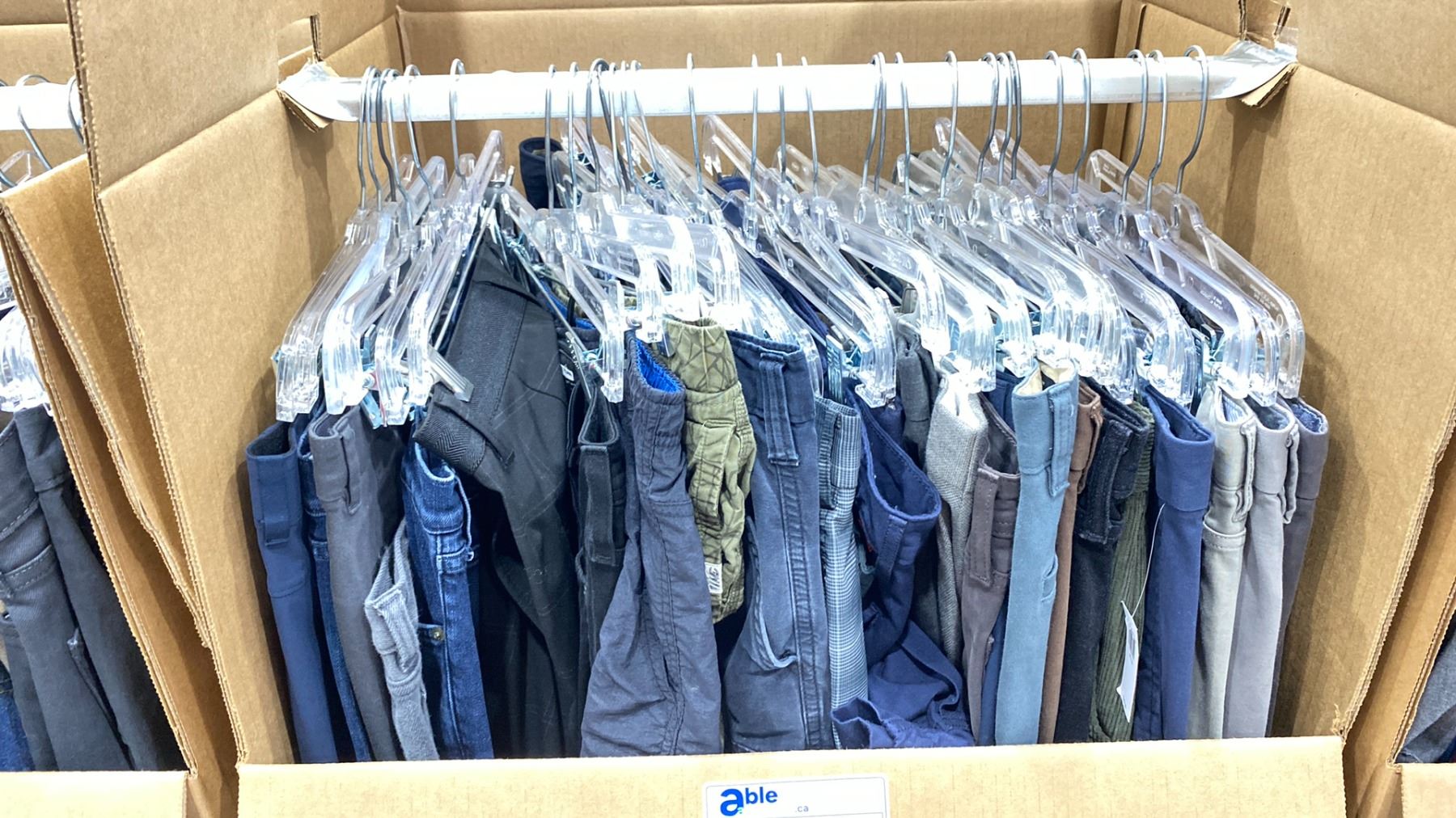 WARDROBE BOX OF ASSORTED CLOTHING (BOX AND ALL CONTENTS MUST BE TAKEN)