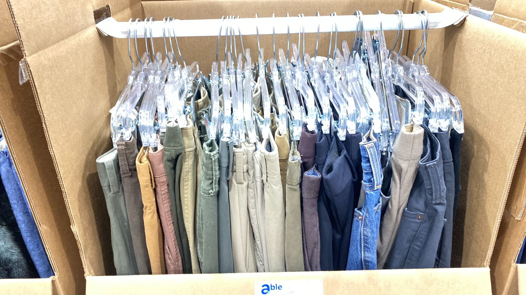 WARDROBE BOX OF ASSORTED CLOTHING (BOX AND ALL CONTENTS MUST BE TAKEN)