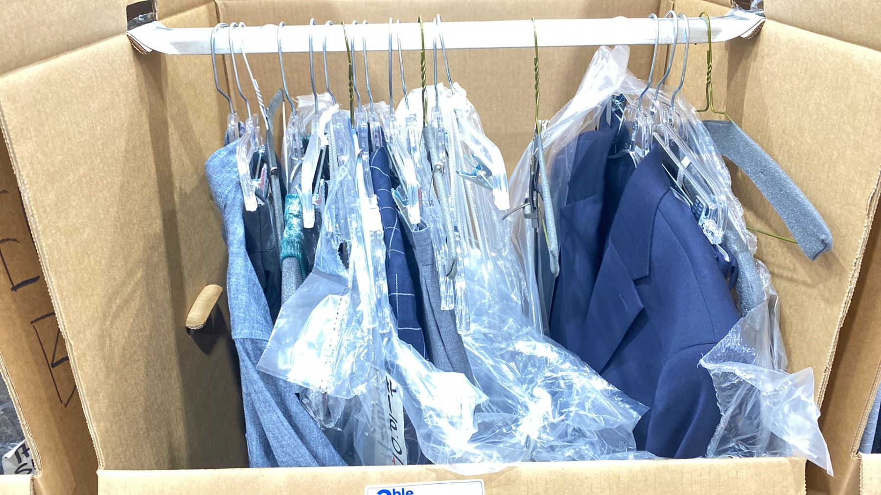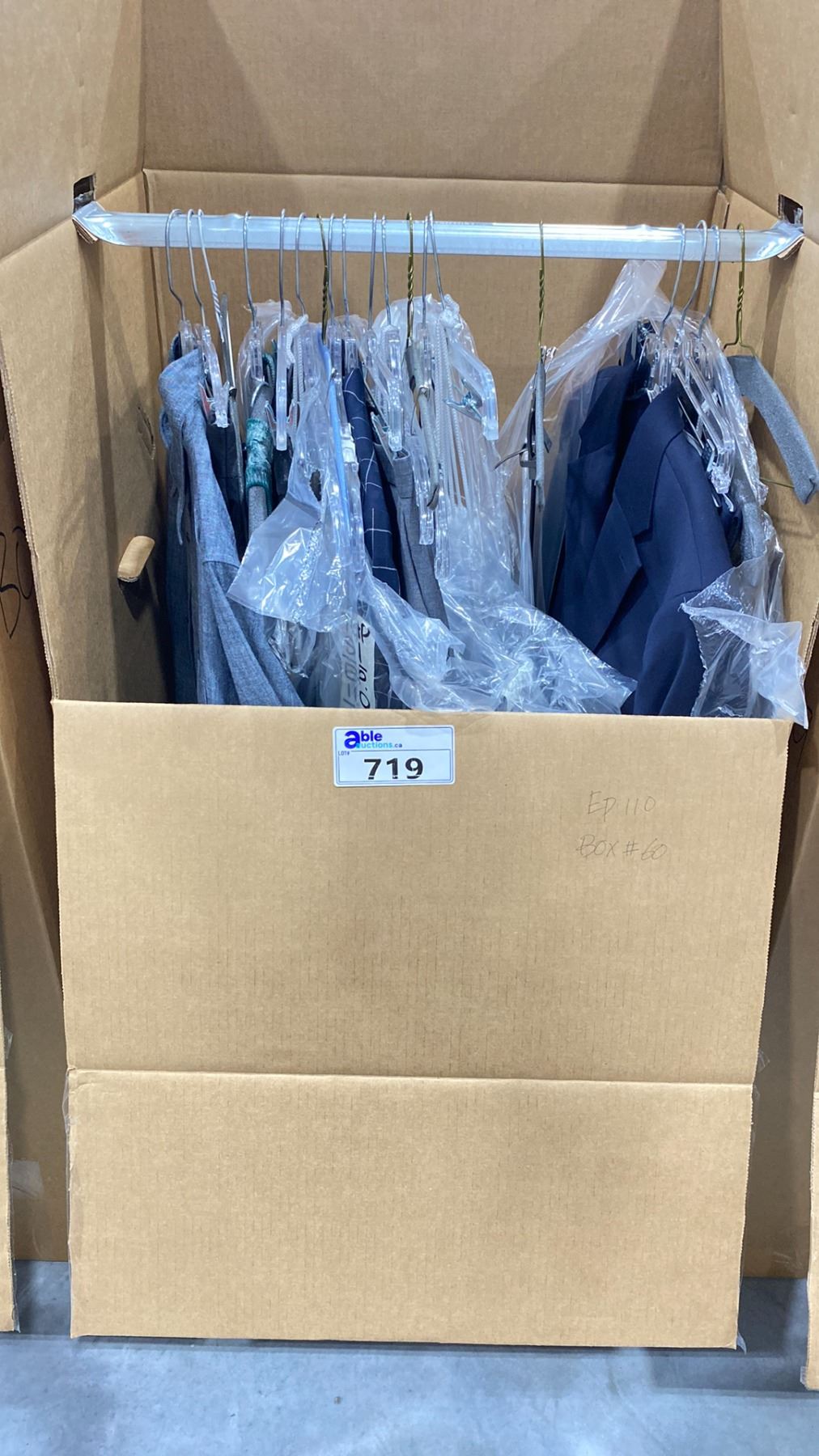WARDROBE BOX OF ASSORTED CLOTHING (BOX AND ALL CONTENTS MUST BE TAKEN)
