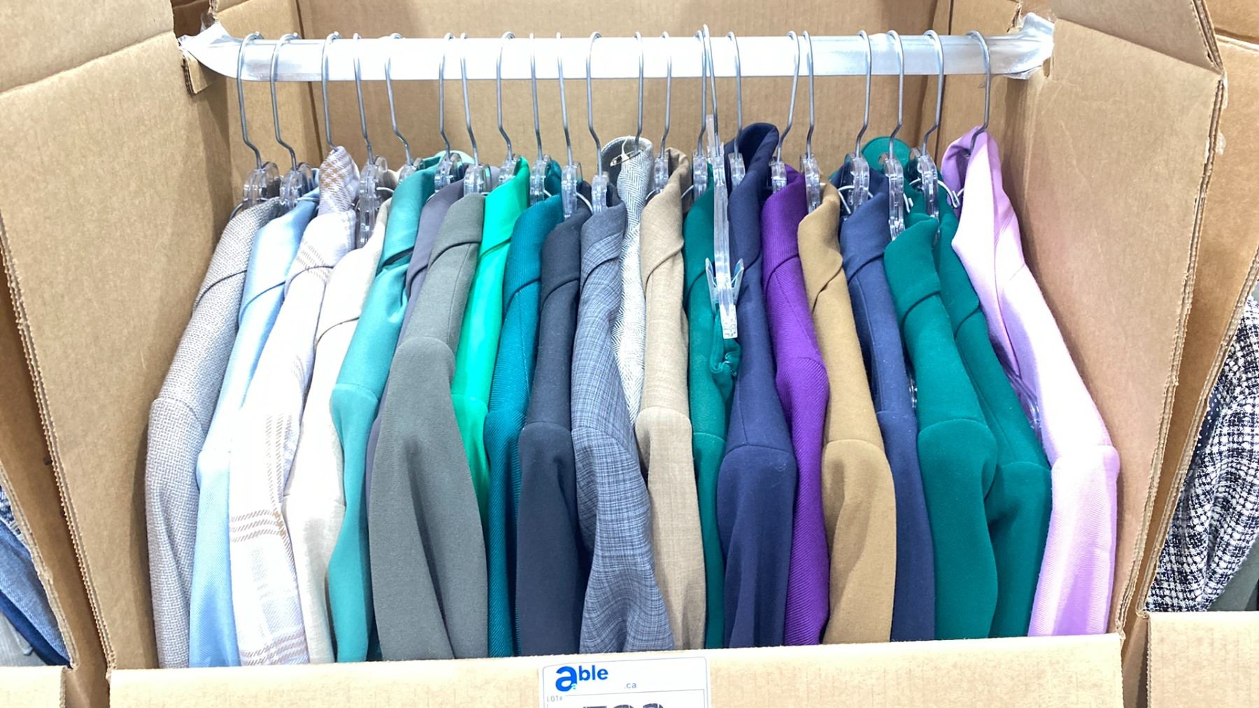 WARDROBE BOX OF ASSORTED CLOTHING (BOX AND ALL CONTENTS MUST BE TAKEN)
