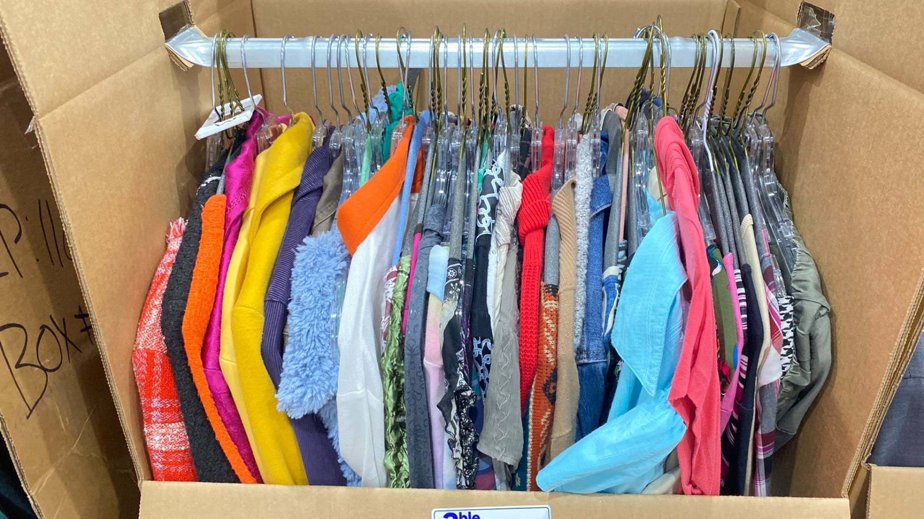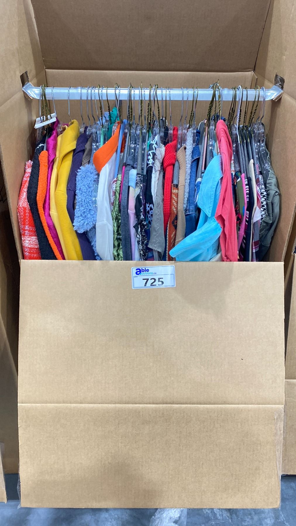 WARDROBE BOX OF ASSORTED CLOTHING (BOX AND ALL CONTENTS MUST BE TAKEN)