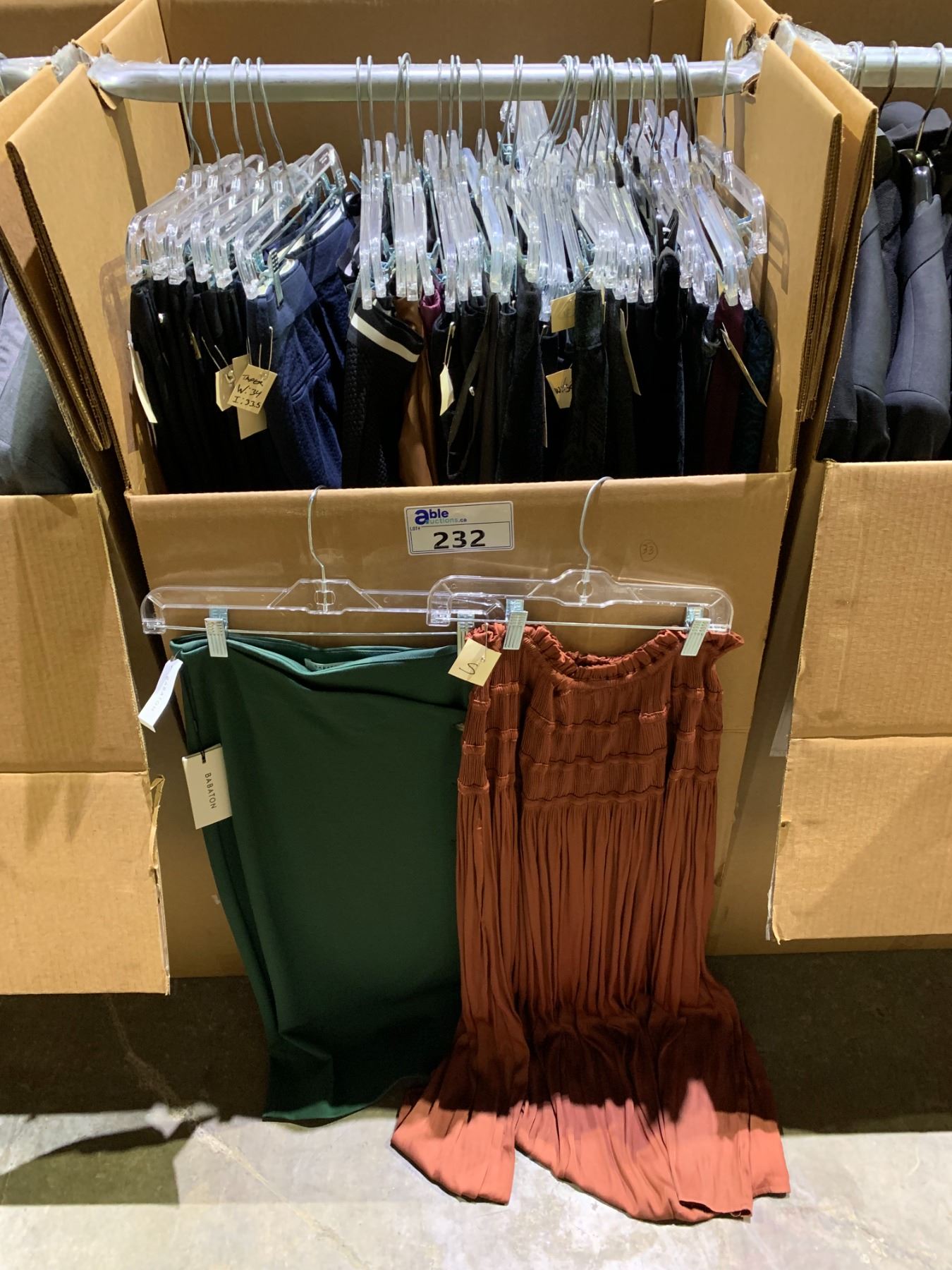 WARDROBE BOX OF ASSORTED CLOTHING INCLUDING; PANTS & SKIRTS
